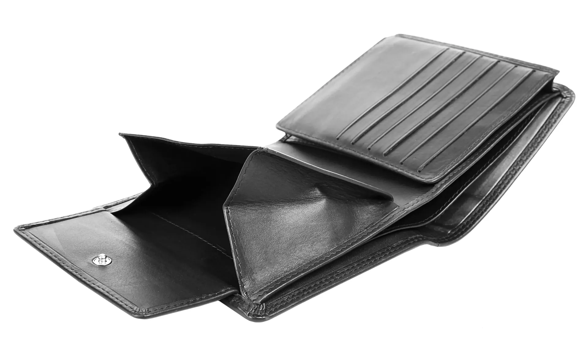 Двойное сложение с 20 отделениями для карт, слотами и 1 отделением для монет.