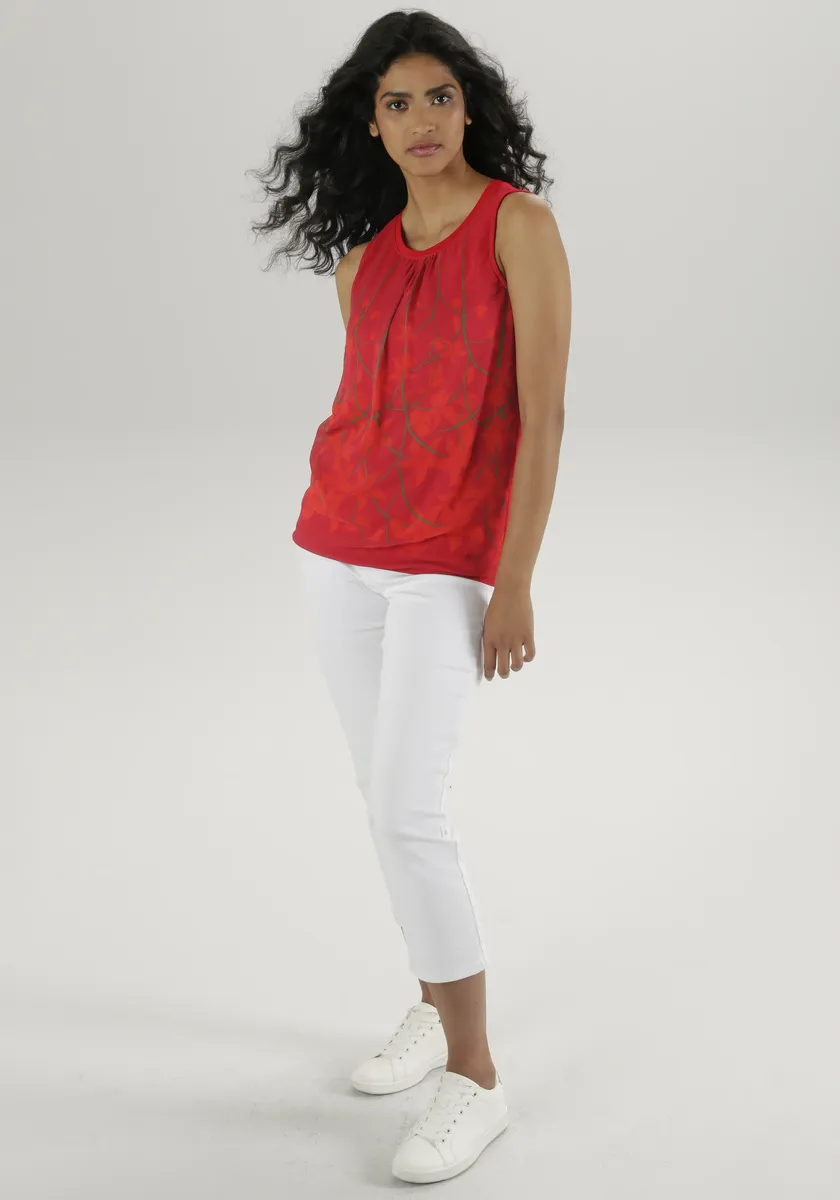 Блуза-топ от Aniston Selected. В модном градиентном принте. Шея круглая со складками. Облегает фигуру. Изготовлен из комфортного сочетания материалов. Машинная стирка.