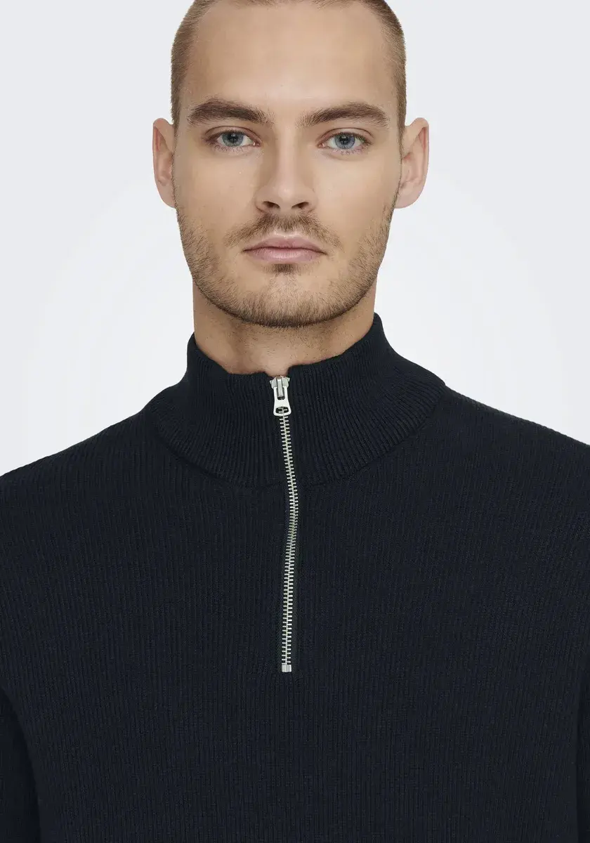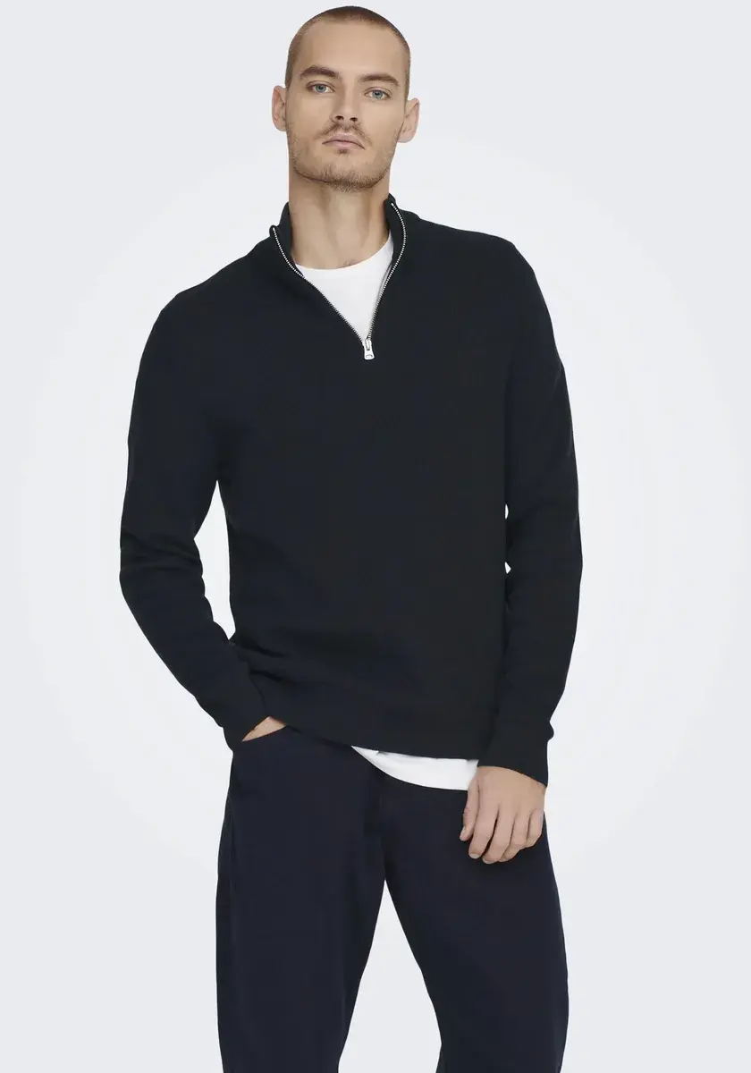 Классический мужской вязаный свитер от ONLY & SONS. С обычным широким вырезом. Рукава длинные. Верх приятен к коже благодаря мягкой хлопковой смеси.