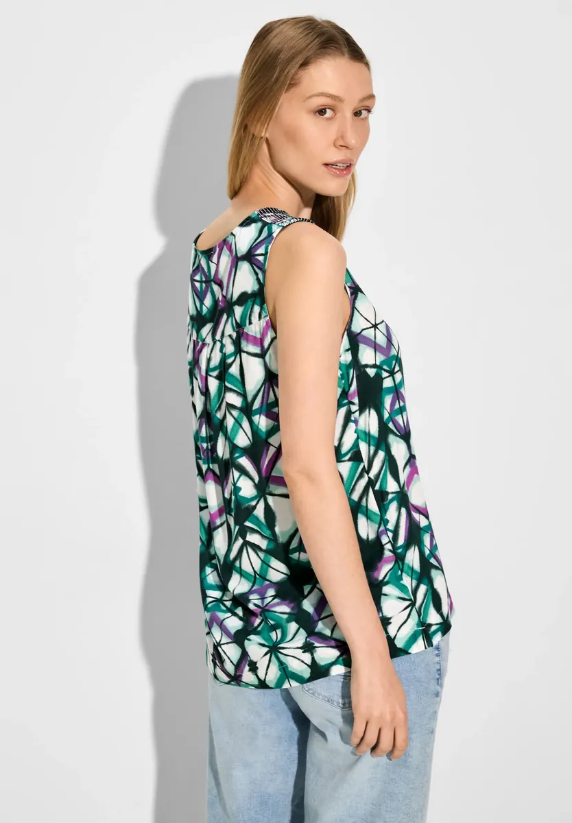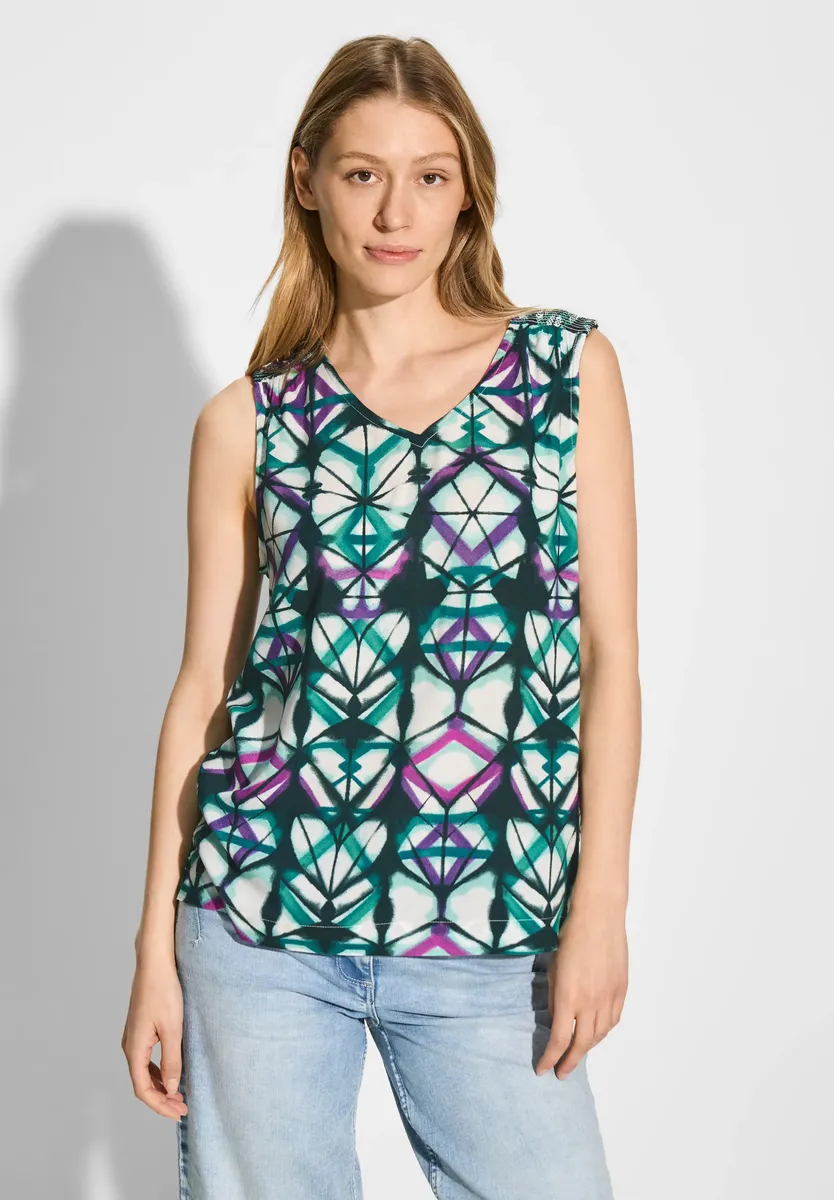 Блузка без рукавов с принтом от CECIL очаровывает V-образным вырезом и легкими рюшами на плечах. Деталь халата придает блузке очаровательный вид, а разрезы по бокам делают ее летней и легкой. Мягкое качество вискозы гарантирует комфортную посадку в теплые дни.Особенности: изготовлено из мягкой вискозыСостав материала: 100% вискозаМатериал: 100% вискоза Инструкция по уходу при отбеливании: Не отбеливать Инструкция по уходу при глажке: Гладить при умеренной температуре Инструкция по уходу за тканями: Профессиональный текстиль очистка перхлорэтиленом. Рекомендации по уходу при сушке: Не сушить в стиральной машине. Рекомендации по уходу при стирке: Деликатная стирка при 30°С. Страна-производитель: INЦелевая группа: Женщины.