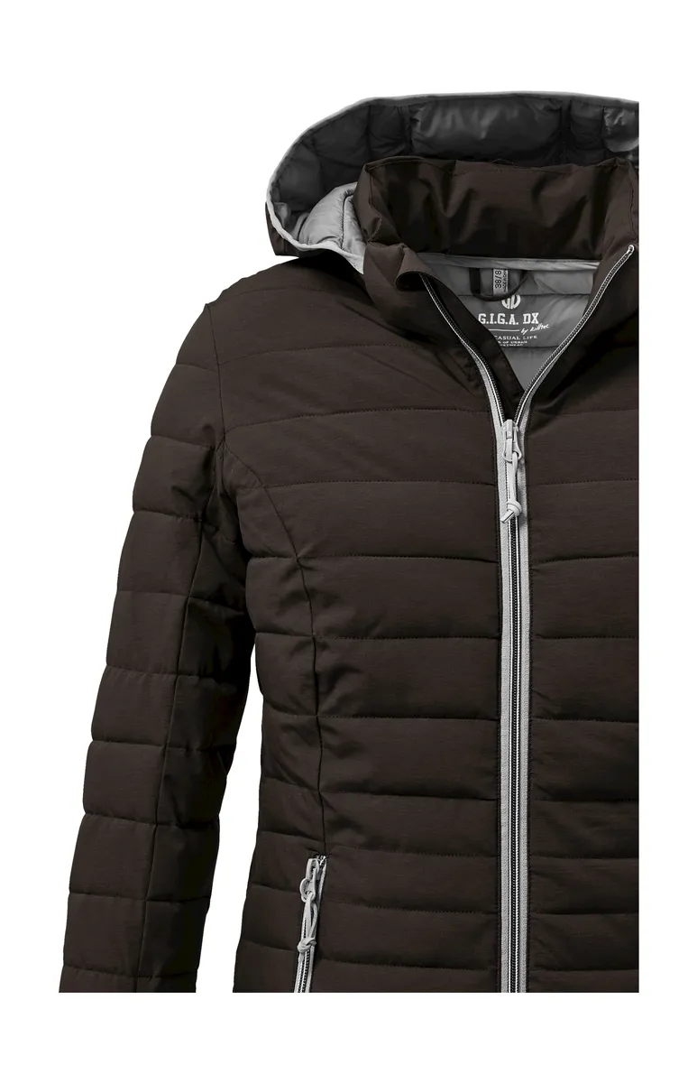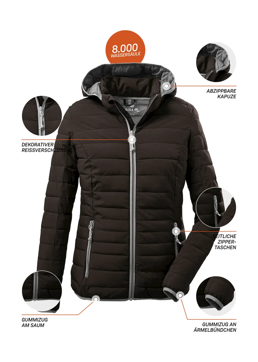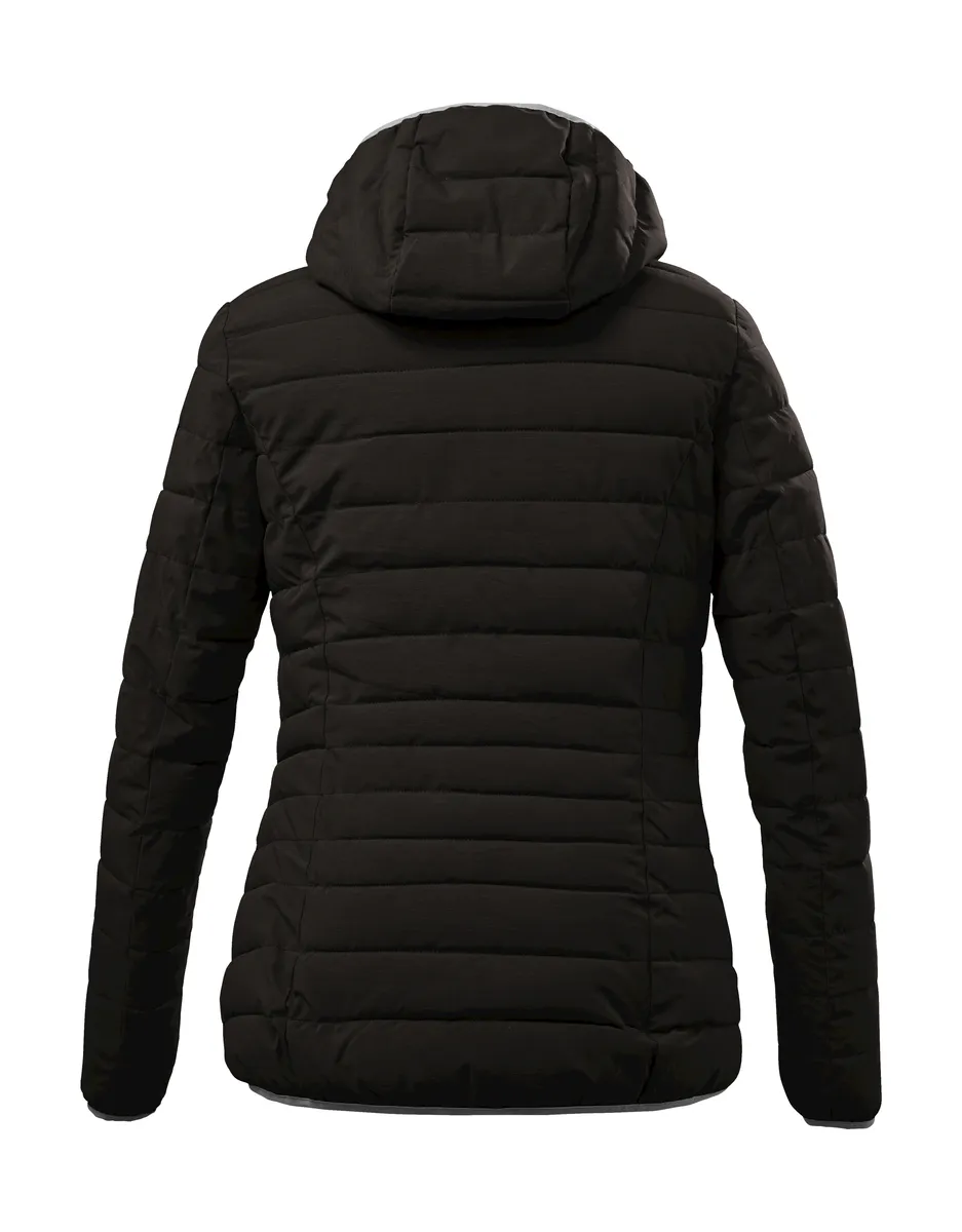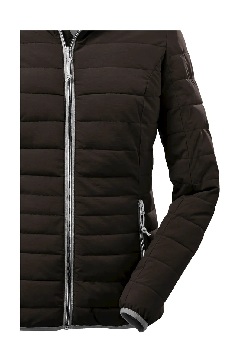 Легкая женская функциональная куртка от G.I.G.A. Модель DX, уложенная вниз, сохраняет тепло и обладает водоотталкивающими свойствами. Высокий воротник и капюшон телогрейки обеспечивают дополнительную защиту в непогоду. Капюшон при необходимости легко отстегивается и, как и низ и манжеты, эластичен. Боковые карманы имеют молнии, чтобы ничего не потерялось. Особый меланжевый вид также делает стеганую куртку визуальной изюминкой. Для killtec особенно важно сделать коллекции более устойчивыми и ориентированными на будущее. killtec все больше полагается на более ответственные производственные процессы. Поэтому эта куртка была пропитана веществами, не содержащими фтора.