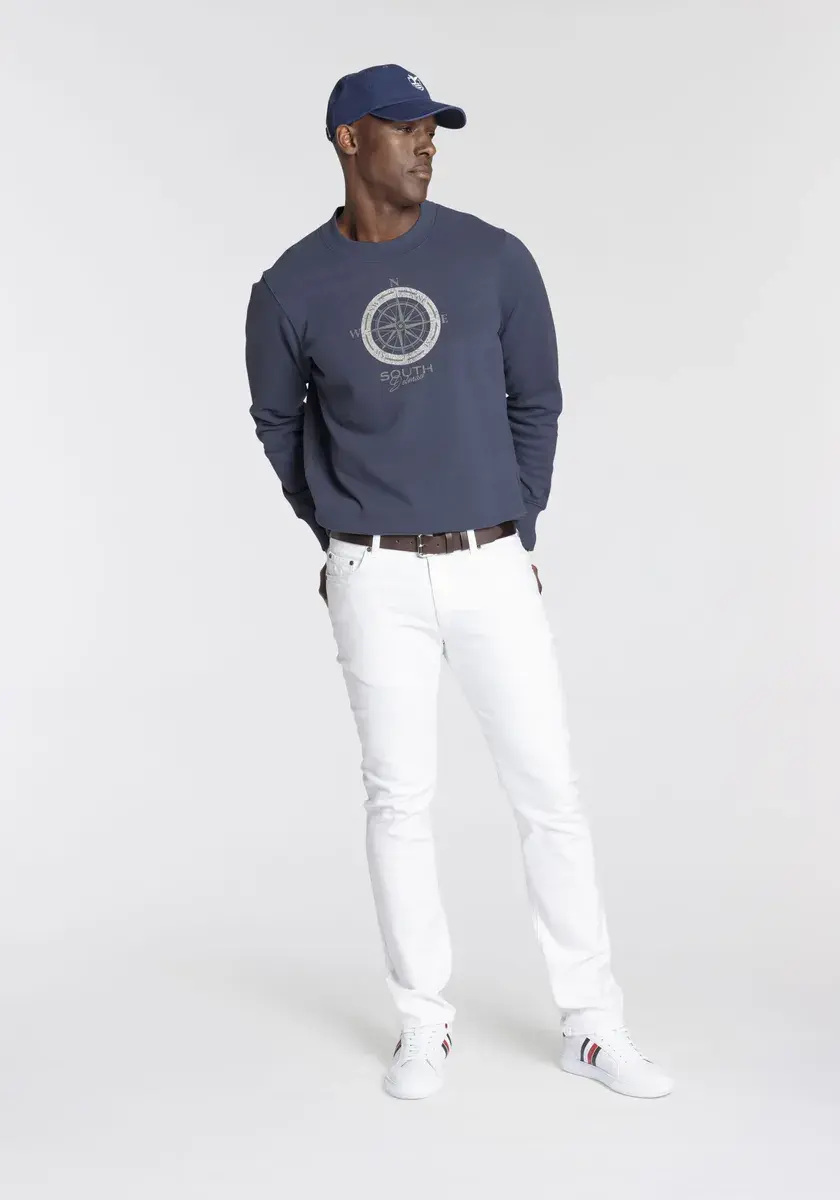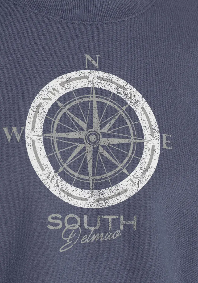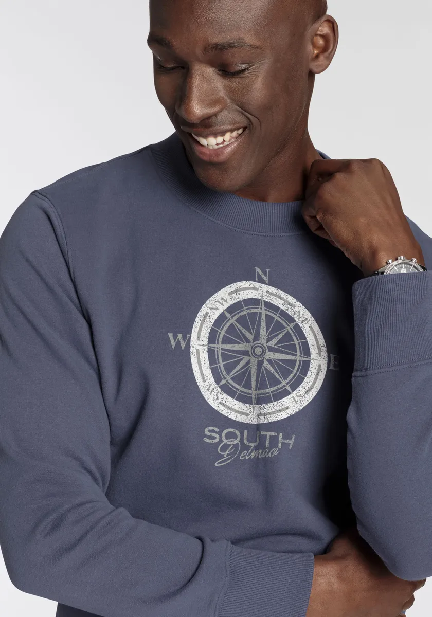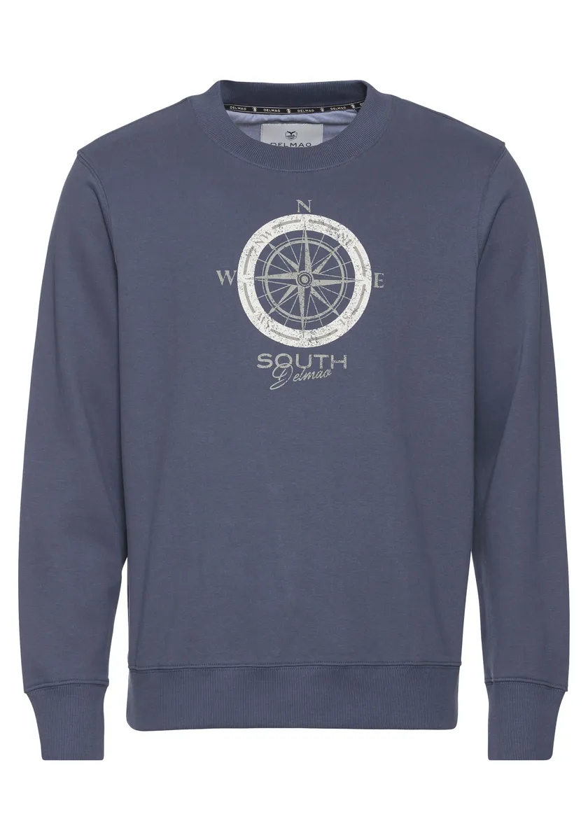 Классический мужской свитшот DELMAO с принтом. С обычным широким вырезом. Можно совместить работу и отдых. Верх мягкий и приятный к коже благодаря внутренней части из начесной ткани.