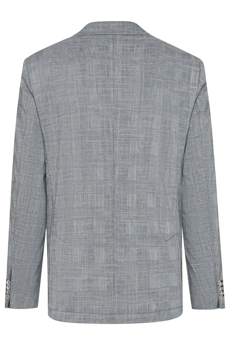 Легкая куртка с воротником с лацканами, накладными карманами, нагрудным карманом и булавкой-клатчем на лацкане. Четыре пуговицы на каждом рукаве и боковые разрезы на спине дополняют дизайн. Детализированная полуподкладка расставляет акценты внутри. Куртка изготовлена ​​из смесового льна и поражает своей легкостью и клетчатым дизайном.