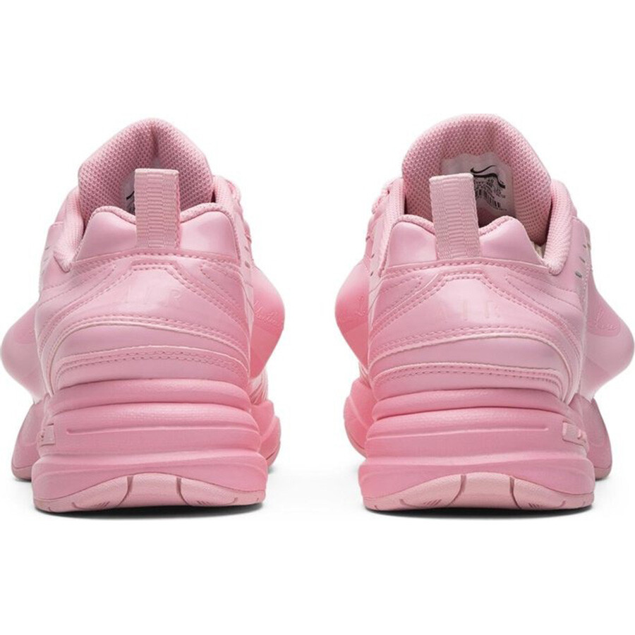 Модель Martine Rose x Air Monarch IV нарушает традиционное представление о силуэте кроссовок. Лондонский дизайнер Martine Rose покрывает верх кроссовок из искусственной кожи в средне-мягкий розовый цвет, но привлекательный оттенок отходит на второй план перед совершенно уникальной особенностью - полиуретановыми вставками под кожаной поверхностью, которые создают неожиданные выступы. Все это опирается на соответствующую розовую промежуточную подошву с полноразмерной амортизацией Nike Air.
