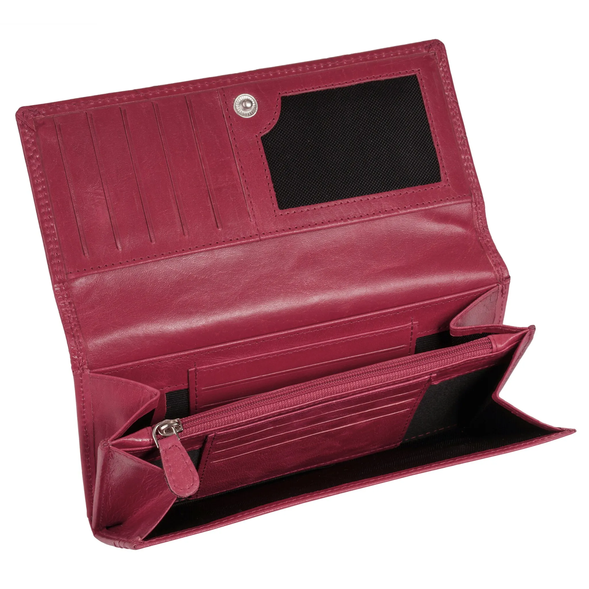 2 отделения для купюр, 19 отделений для карт, 2 накладных кармана и 1 видимое отделение.