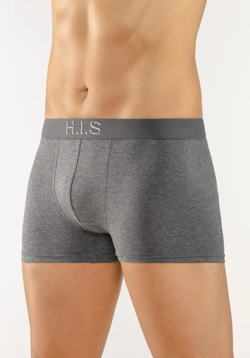 Боксеры H.I.S в упаковке по 5 штук. Тканый пояс с надписью логотипа с 3D-эффектом. Внешний материал: 95% хлопок, 5% эластан.