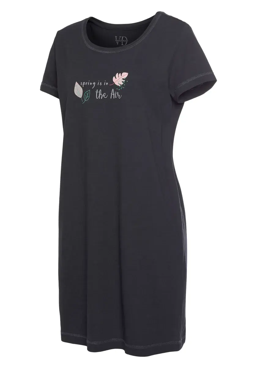 Большая рубашка от Vivance Dreams. С короткими рукавами, круглым вырезом и принтом спереди. Мягкий трикотаж высокого качества из смеси хлопка и вискозы.