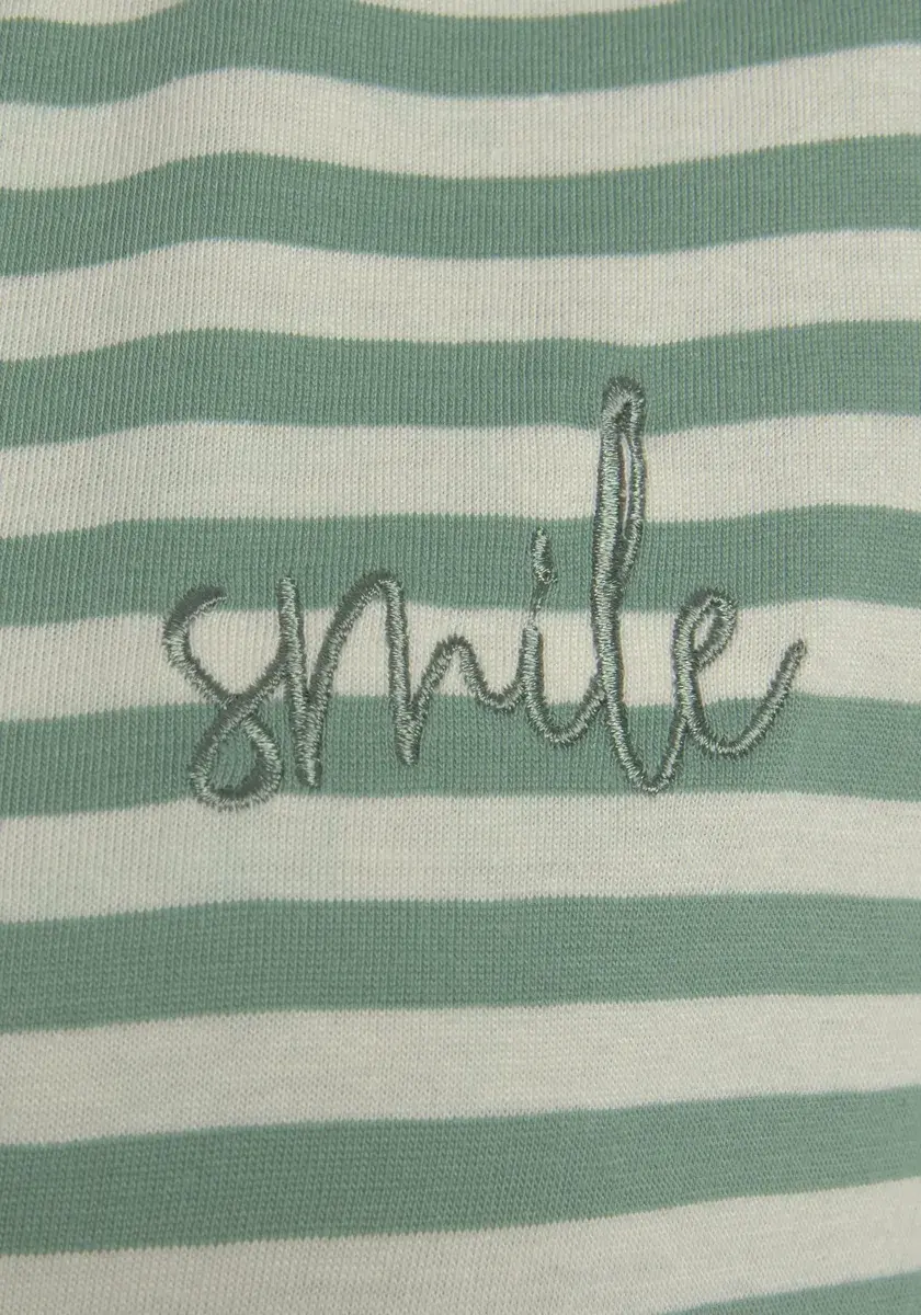 Большая рубашка от Vivance Dreams. С полосатым узором и тонкой вышивкой. Удобный крой с короткими рукавами реглан и круглым вырезом. Мягкий трикотаж высокого качества из хлопка.