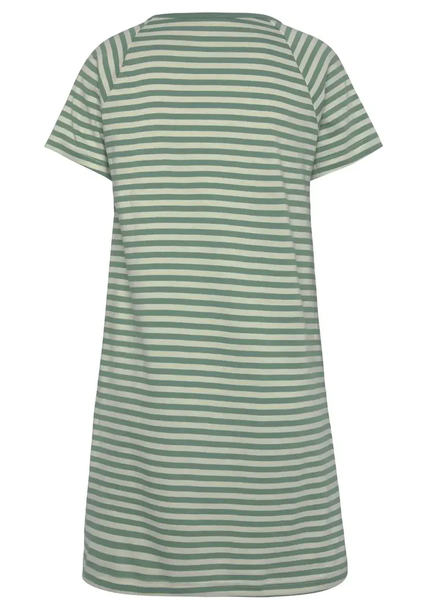 Большая рубашка от Vivance Dreams. С полосатым узором и тонкой вышивкой. Удобный крой с короткими рукавами реглан и круглым вырезом. Мягкий трикотаж высокого качества из хлопка.