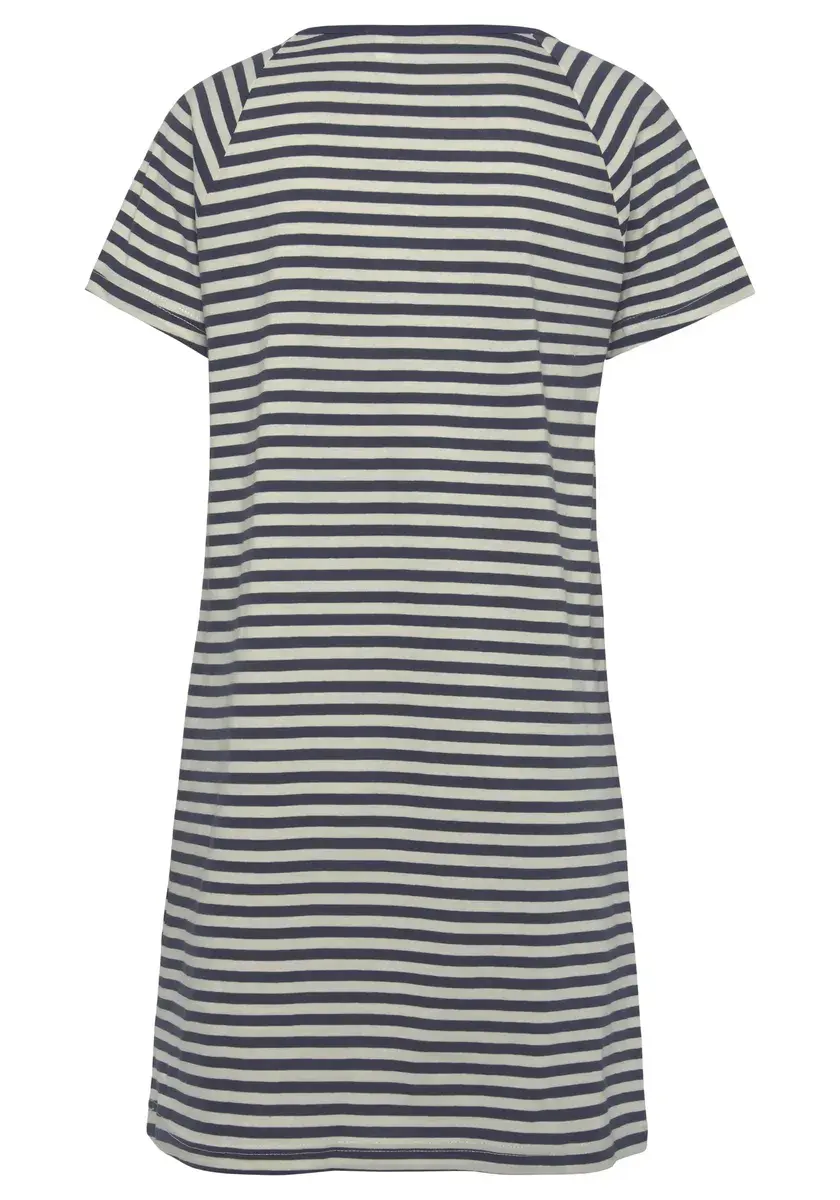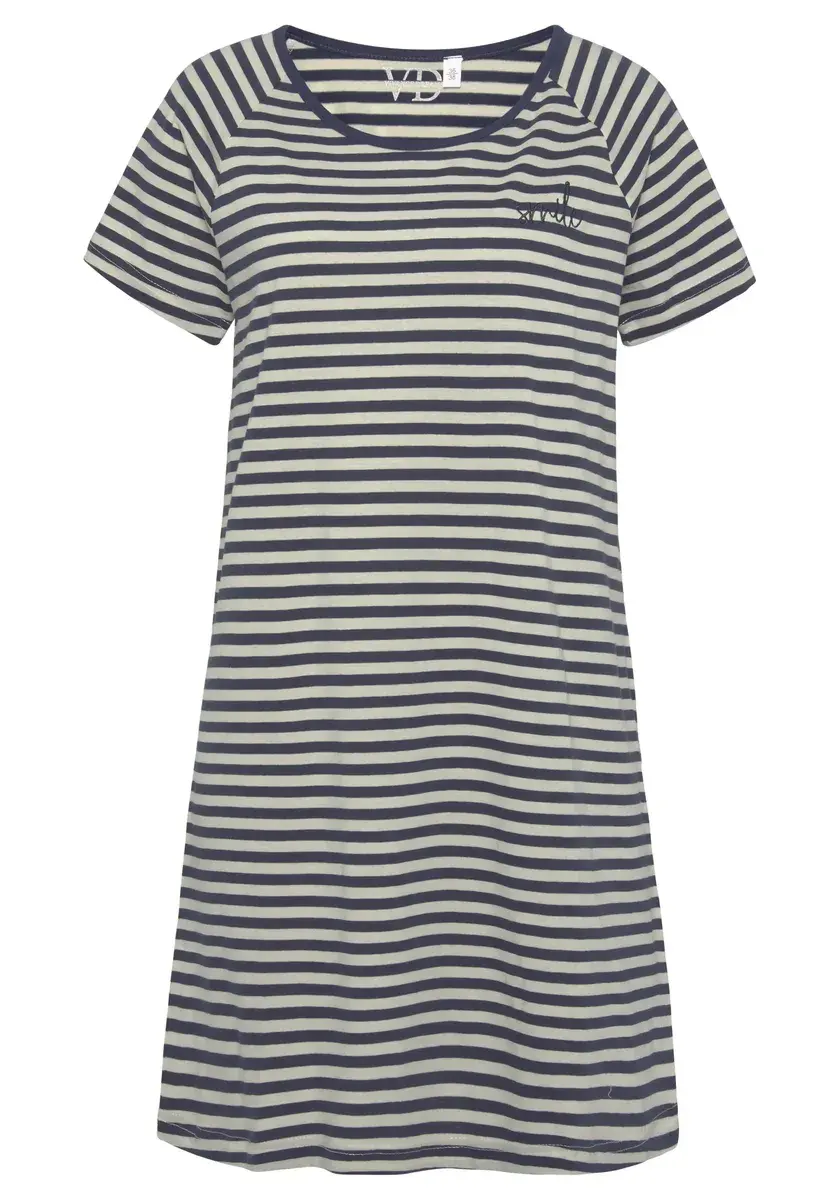 Большая рубашка от Vivance Dreams. С полосатым узором и тонкой вышивкой. Удобный крой с короткими рукавами реглан и круглым вырезом. Мягкий трикотаж высокого качества из хлопка.