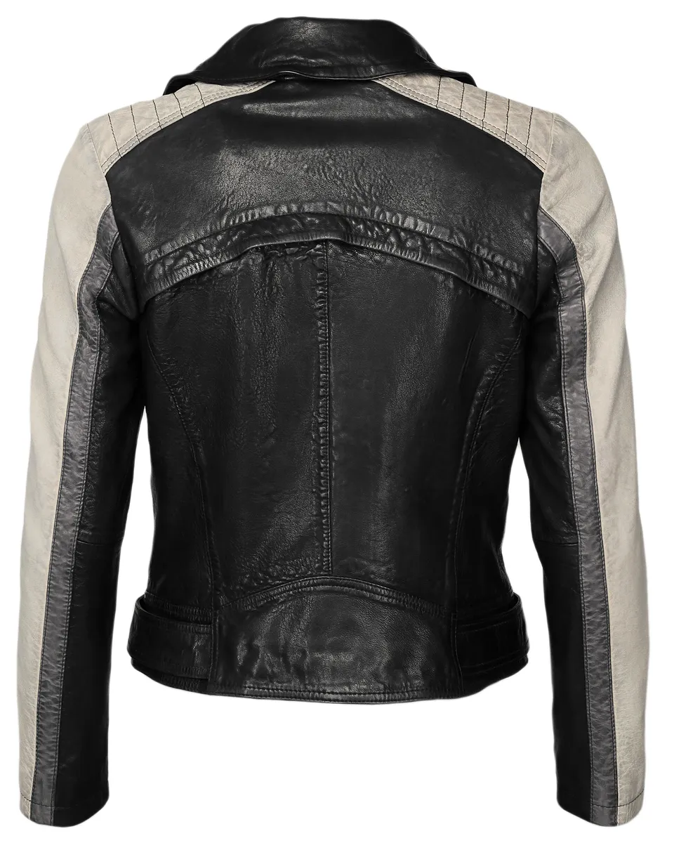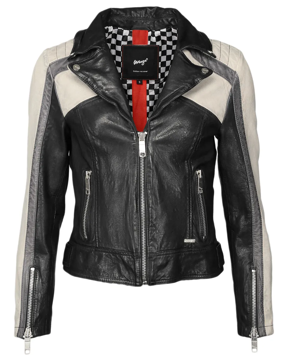 Классная кожаная куртка от Maze. Куртка имеет асимметричную молнию с широким рубашечным воротником. Кроме того, куртка оснащена красивыми декоративными швами и двумя боковыми карманами на молнии. Слегка адаптированный крой гарантирует оптимальную посадку и высокий уровень комфорта. Для этого на манжетах использовались молнии. Куртка имеет дополнительный внутренний карман. Абсолютной изюминкой куртки является сочетание черного и кремово-белого цвета. Случай: Вечеринка/Вечерняя одеждаБазовый режим: НетОтбеливание: Не отбеливатьГлажение: Не гладитьПодкладка: Легкая подкладкаПол: ЖенскийРазмерный диапазон: Американские размерыСтиль куртки: Кожаная курткаКоллекция: Весна / Лето 19Воротник/Вырез: Рубашечный воротникМатериал: КожаМатериал подкладки: ПолиэстерМатериал внешней ткани: Гладкая кожаМатериал подкладки рукавов: ПолиэстерСвойства материала: КожаСостав материала: Верхний материал: 100% кожа ягненка / Подкладка: 100% полиэстерВерхние детали: не указаноПосадка: Нормальная посадкаИнструкции по уходу: Специальная чистка кожиПродукт Тип/стиль: КурткаПокрой: ПриталенныйСпециальные размеры Уровень продукта: не указанСтиль: КурткаТип застежки: МолнияДлина спинки: около 53 см для размера. С