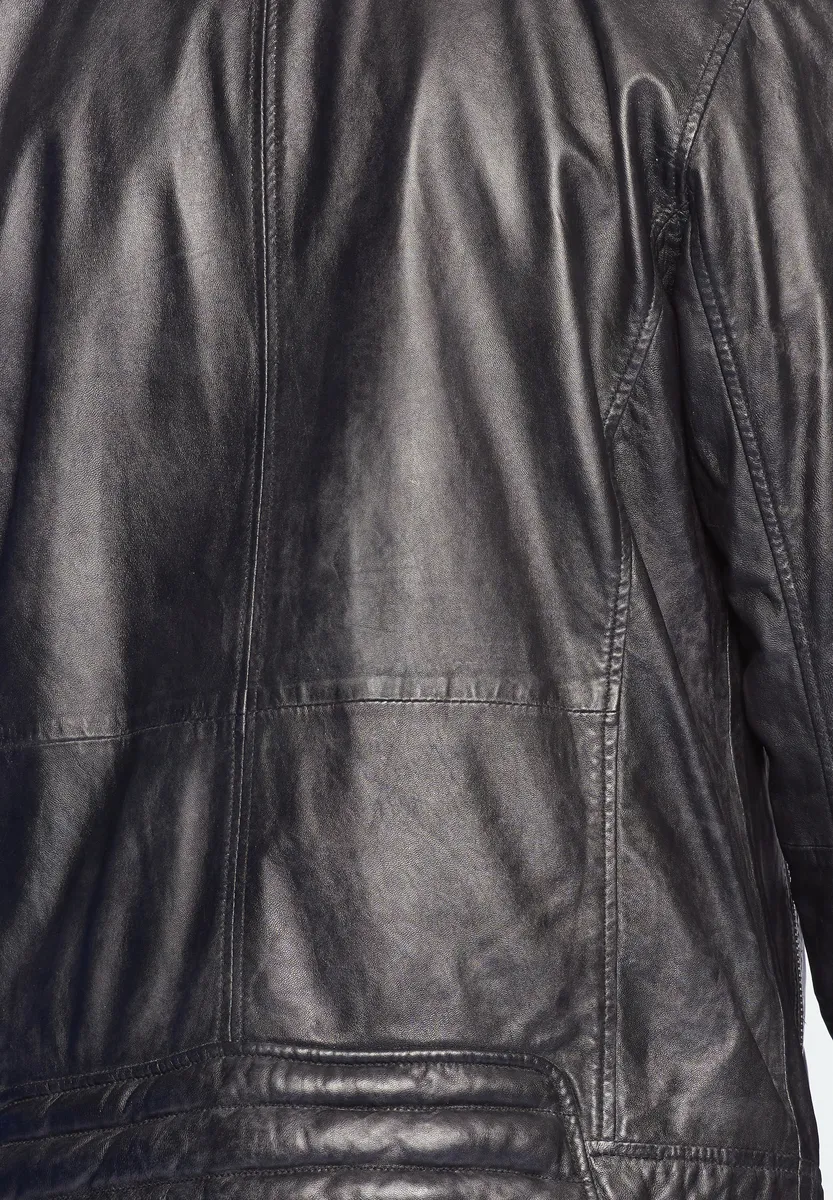 Классная кожаная куртка от модного бренда Mustang. Эта куртка в байкерском стиле имеет два кармана на молнии, нагрудный карман и два внутренних кармана: один на пуговице, другой на молнии. Кожаная куртка застегивается на прямую молнию. Благодаря классическому крою в сочетании с коротким воротником-стойкой и молниями на манжетах эта куртка обеспечивает превосходный комфорт при ношении.Базовая версия: Без подкладки: легкая подкладкаПол: мужскиеКлассификация размеров: альфа (внутренний размер, XS...)Размерный ряд : Размеры СШАСтрана-производитель: Индия (IN)Стиль куртки: кожаная курткаКоллекция: Осень/Зима 19Воротник/вырез: воротник-стойкаМатериал: кожаМатериал подкладки: хлопокМатериал внешней ткани: гладкая кожаМатериал подкладки рукавов: полиэстерХарактеристика материала: кожаСостав материала: Внешний материал: 100% кожа, ягненок / подкладка: 100% хлопок / подкладка рукавов: 100% полиэстерПосадка: Нормальная посадкаИнструкции по уходу: Специальная чистка кожиТип/стиль изделия: КурткаПокрой: ПрямойСпециальные размерыУровень продукта: не указаноСтиль: КурткаТип застежки: МолнияДетали рукава: не указаноДлина рукава: Длинный рукавСзади Длина: около 66 см по размеру. М