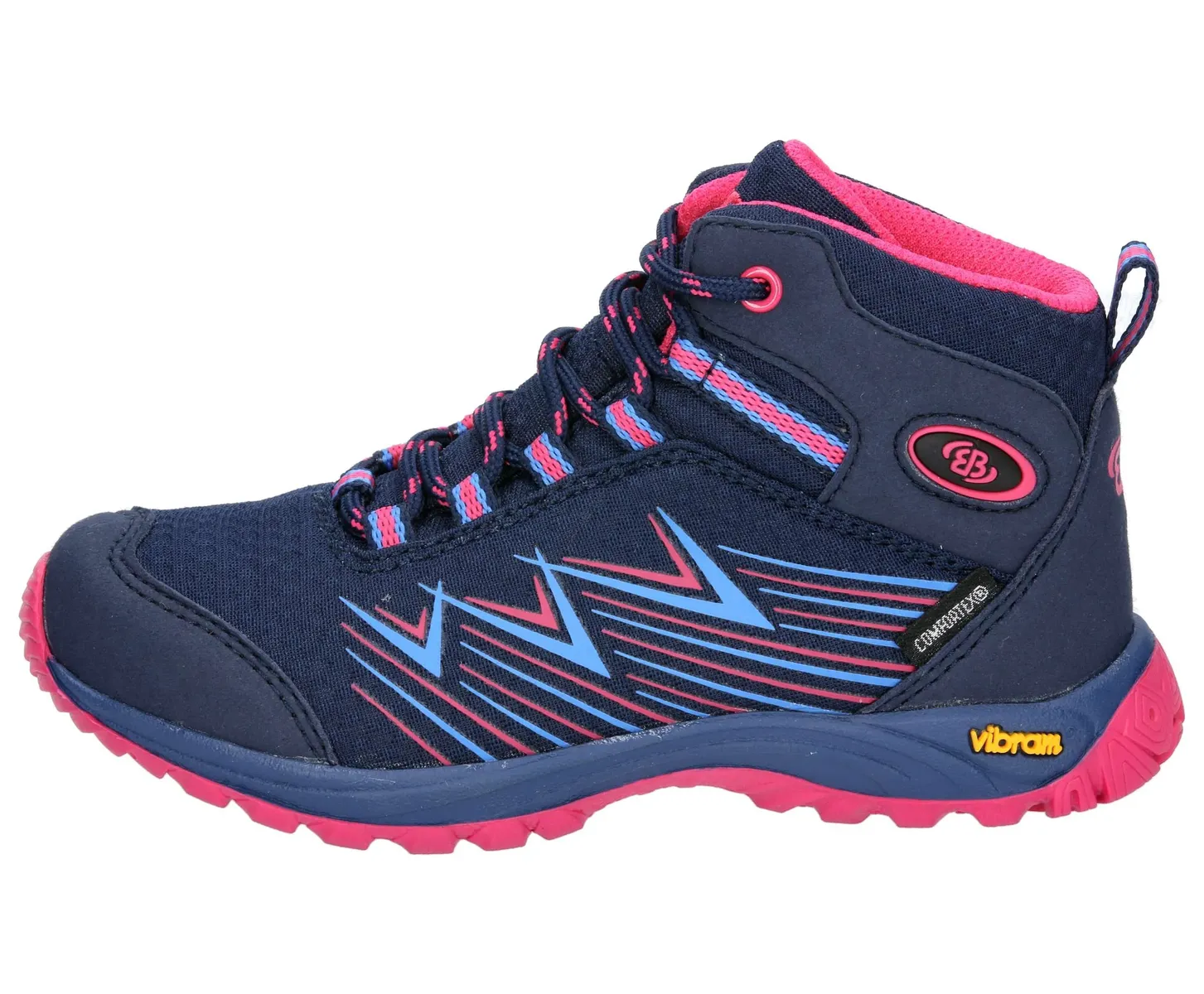 Водонепроницаемые походные ботинки CHESNA HIGH от Brütting бросают вызов плохим погодным условиям. Уличные сапоги до щиколотки для детей и подростков изготовлены из прочного нейлона с синтетической отделкой. Водонепроницаемая и дышащая климатическая мембрана Comfortex сохраняет ноги сухими внутри и снаружи и, таким образом, обеспечивает ощущение сухости при ношении. Внутренняя подкладка и сменная стелька выполнены из удобной текстильной подкладки. Благодаря устойчивой и нескользящей подошве Vibram эти уличные ботинки также подходят для походов по пересеченной местности.