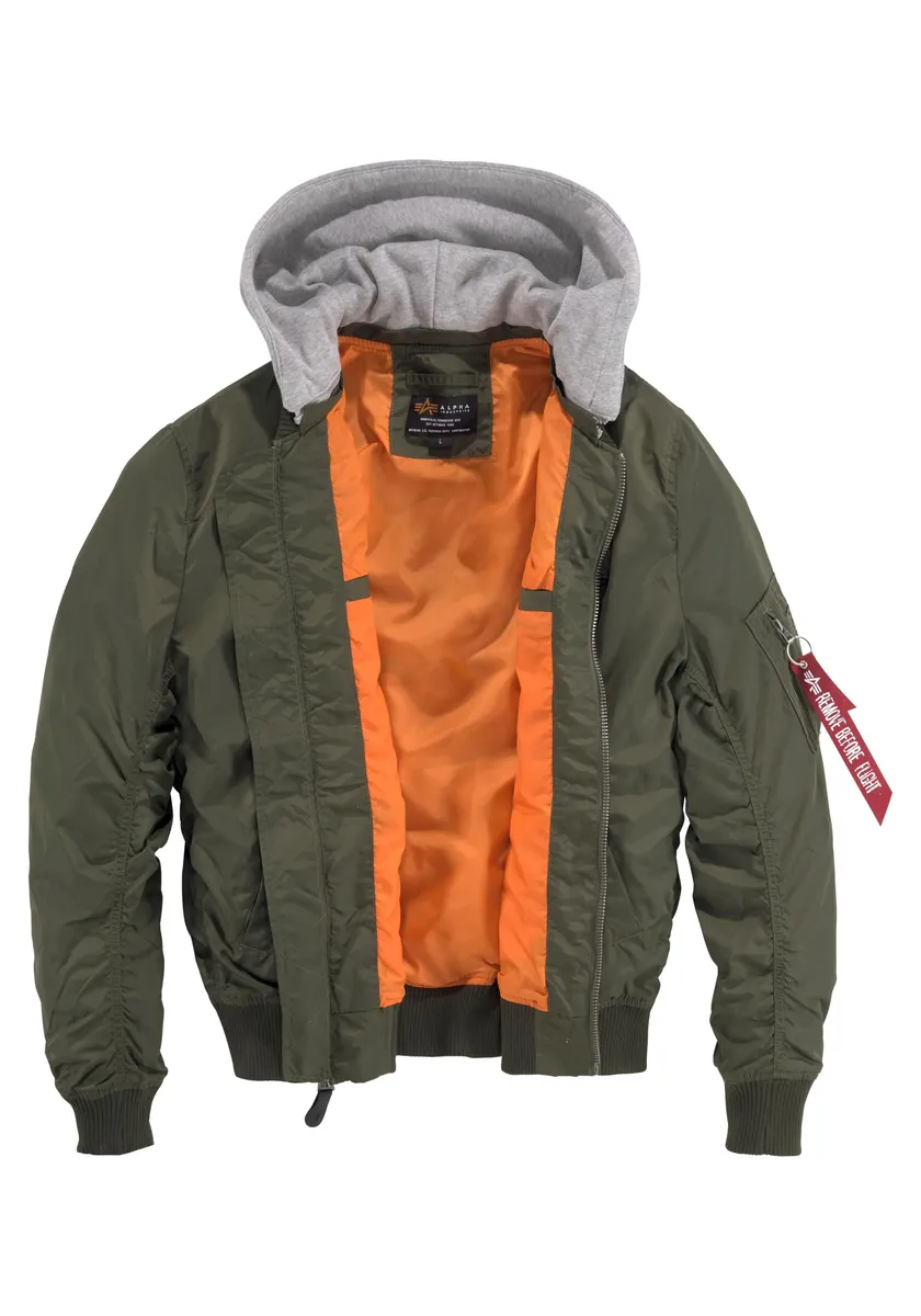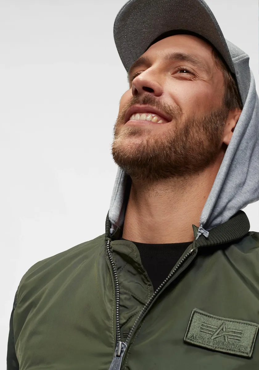 Куртка-бомбер Alpha Industries "MA-1 TT HOOD", с капюшоном, зеленый
