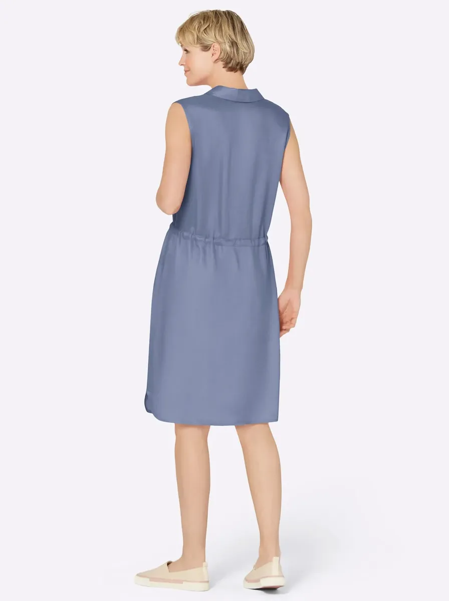 Воздушное, легкое и приятно мягкое платье – наш фаворит для прекрасных летних дней, прогулок по пляжу и очередной вечеринки в саду. Открытый воротник рубашки с планкой с имитацией пуговиц, формирующими вытачками на груди и регулируемой талией на кулиске. Слегка закругленные боковые разрезы на подоле. Вискоза качества ECOVERO от Lenzing. 100% вискоза. Машинная стирка.