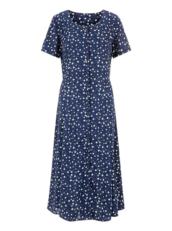 Воздушное, легкое платье для теплых летних дней. Все вокруг украшено нежным цветочным узором. Спереди с планкой на пуговицах во всю длину. Сзади на узких завязках, позволяющих самостоятельно регулировать размер талии. С облегающими швами. За ней невероятно легко ухаживать, поскольку ткань не требует глажки! 100% полиэстер. Машинная стирка.