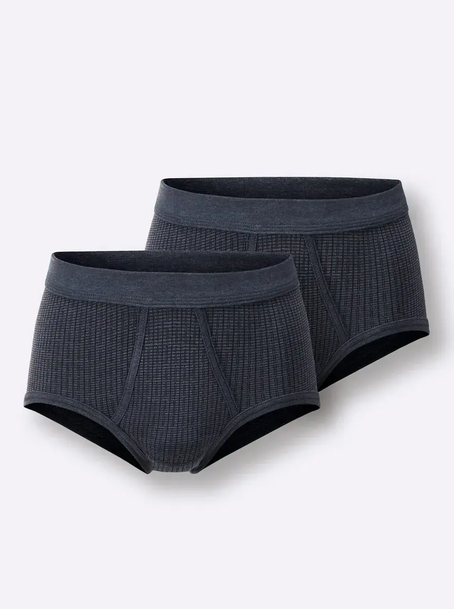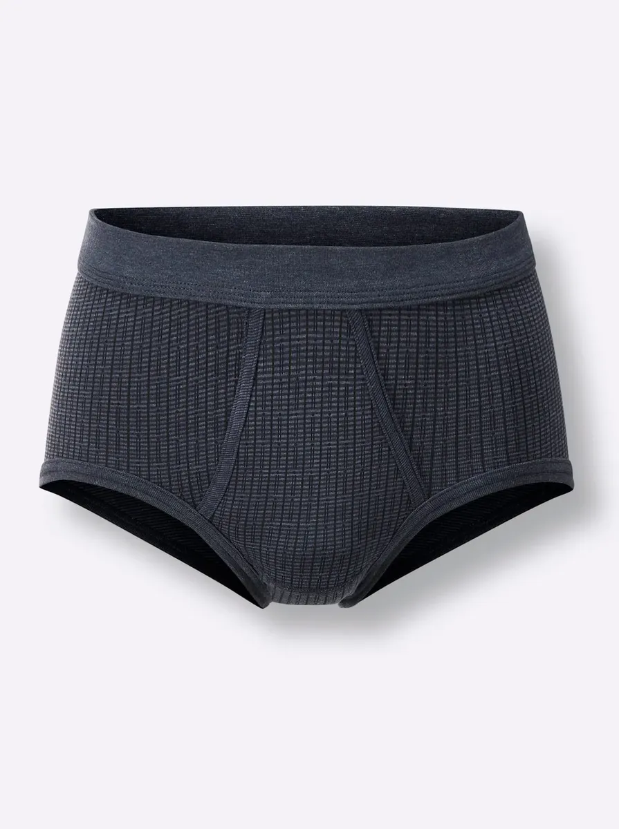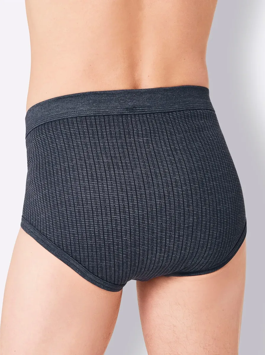 Климатическое волокно – для хорошего отвода влаги и оптимального регулирования климата: трусы с ширинкой и мягким поясом. Эластичные манжеты на ногах. Тонкое ребро. 75% хлопок, 25% полиэстер.