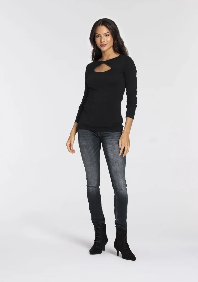 Легко сочетаемый женский вязаный свитер от Melrose с узлами. С индивидуальным кроем. Это позволяет создавать уютные и модные образы. Топ из тонкого трикотажа сохраняет тепло и очень удобен в носке.