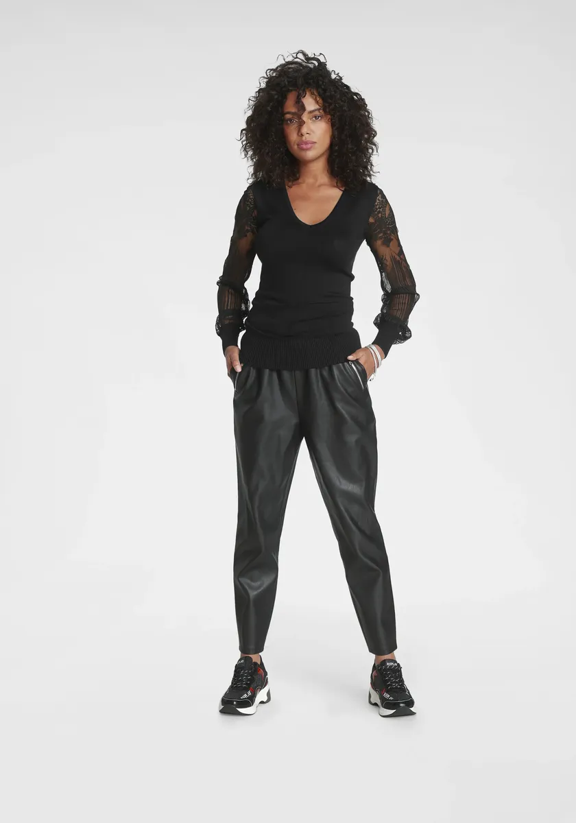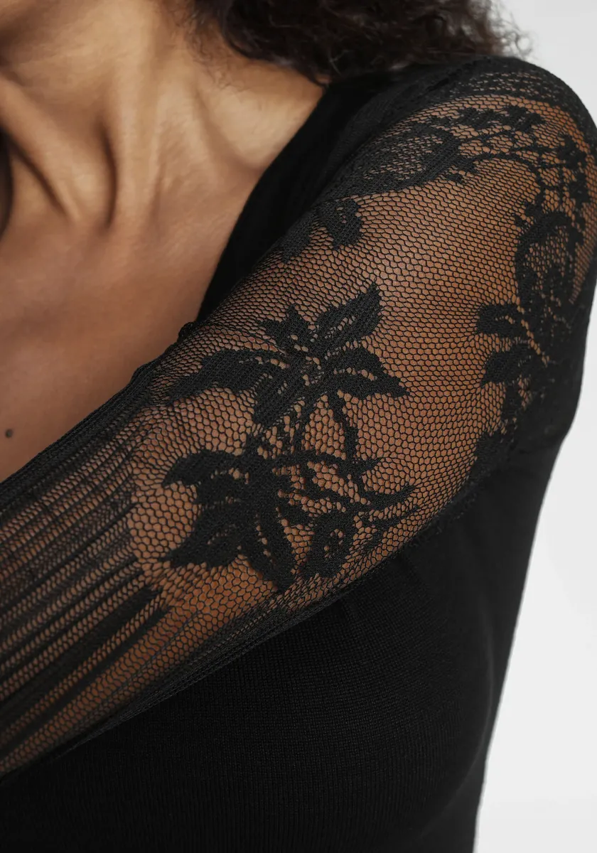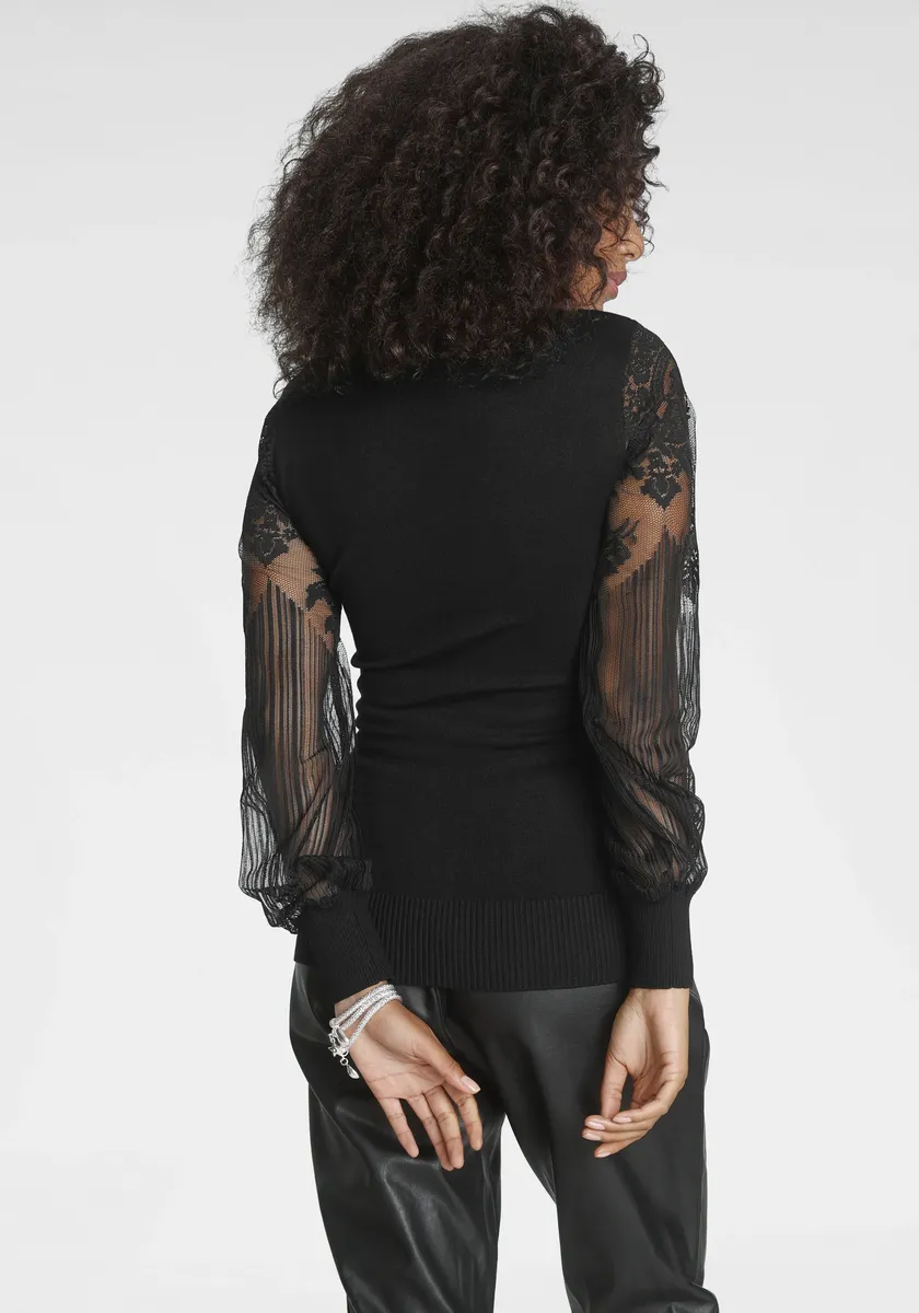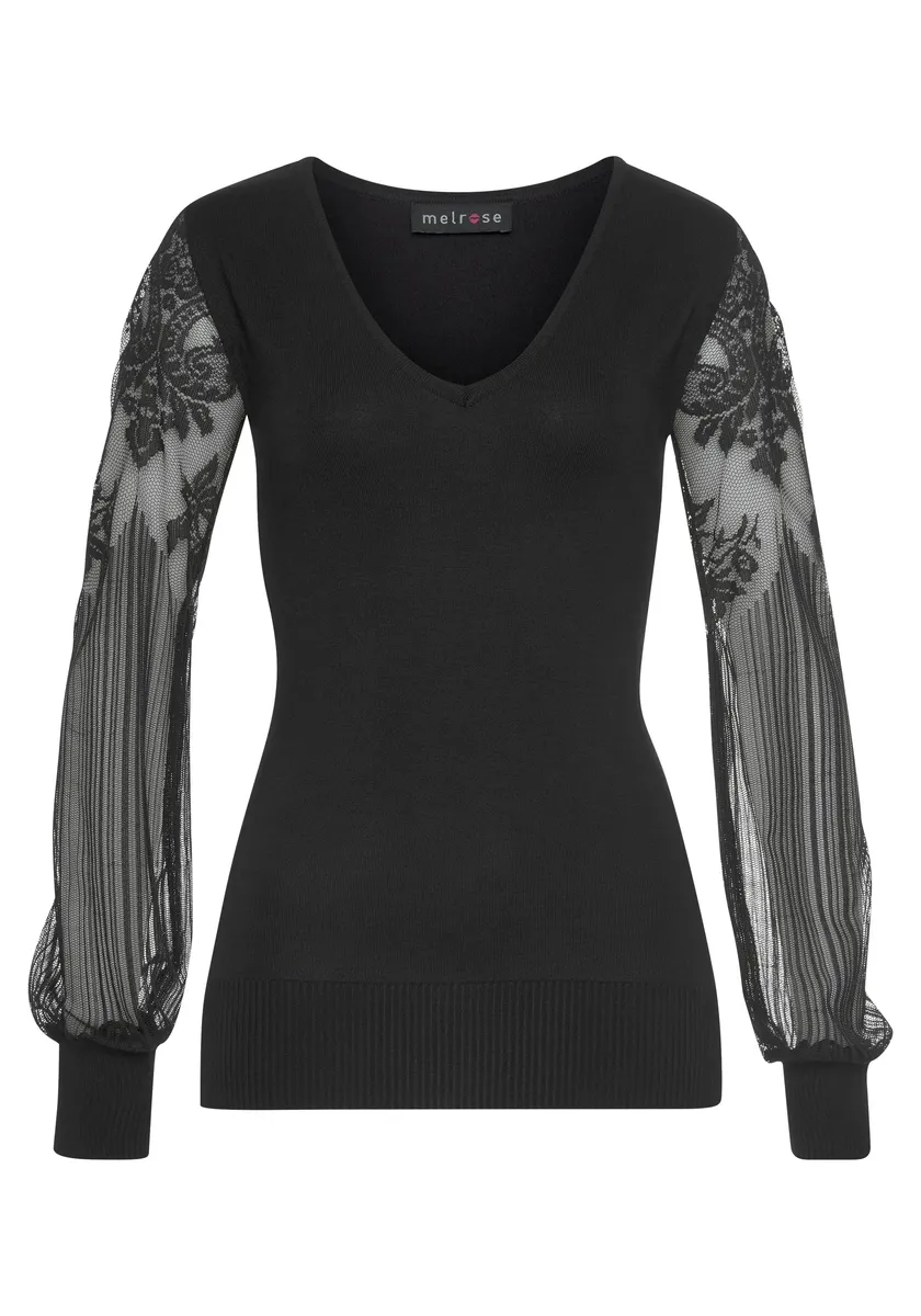 Свитер Melrose с V-образным вырезом и кружевными рукавами, черный