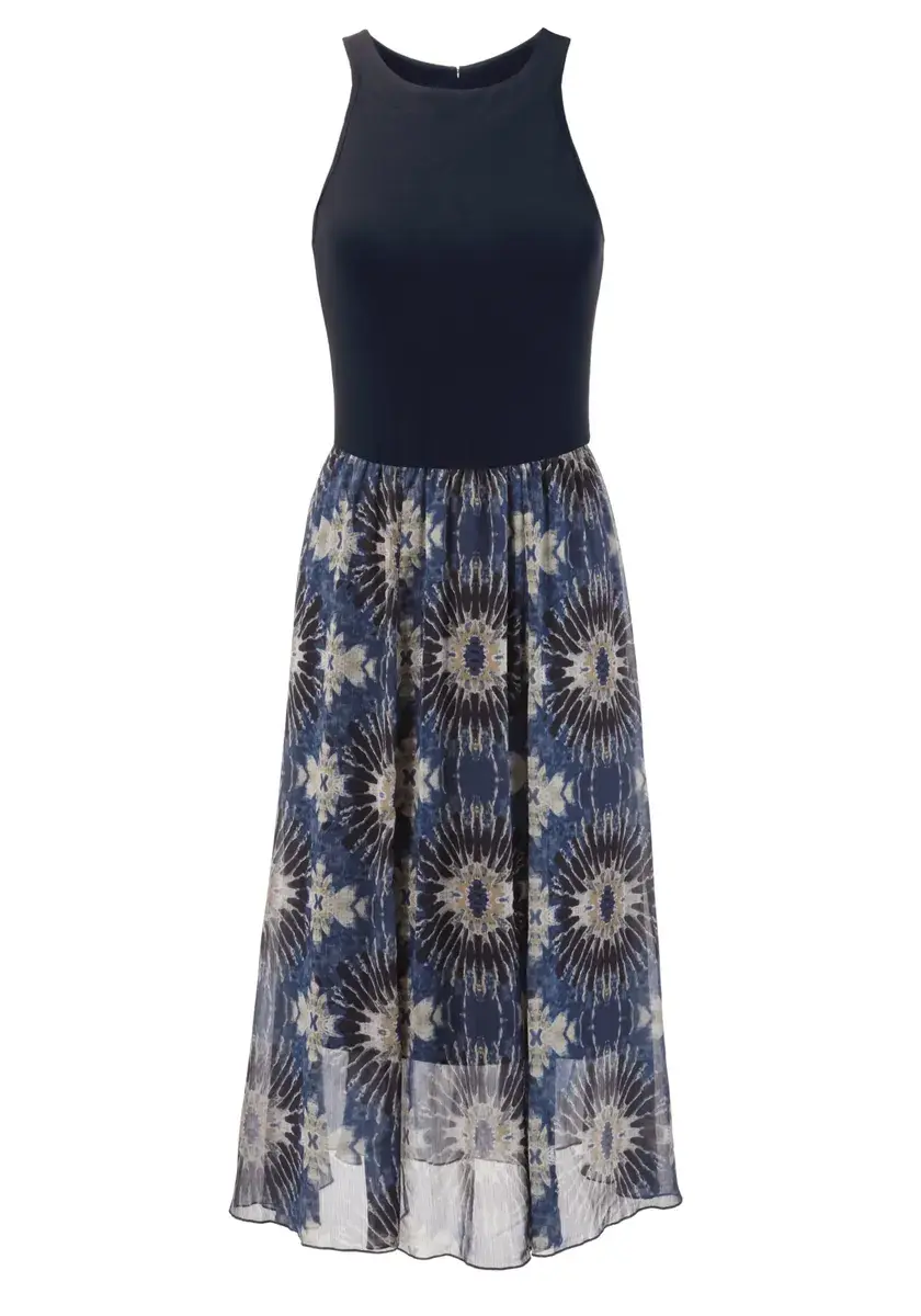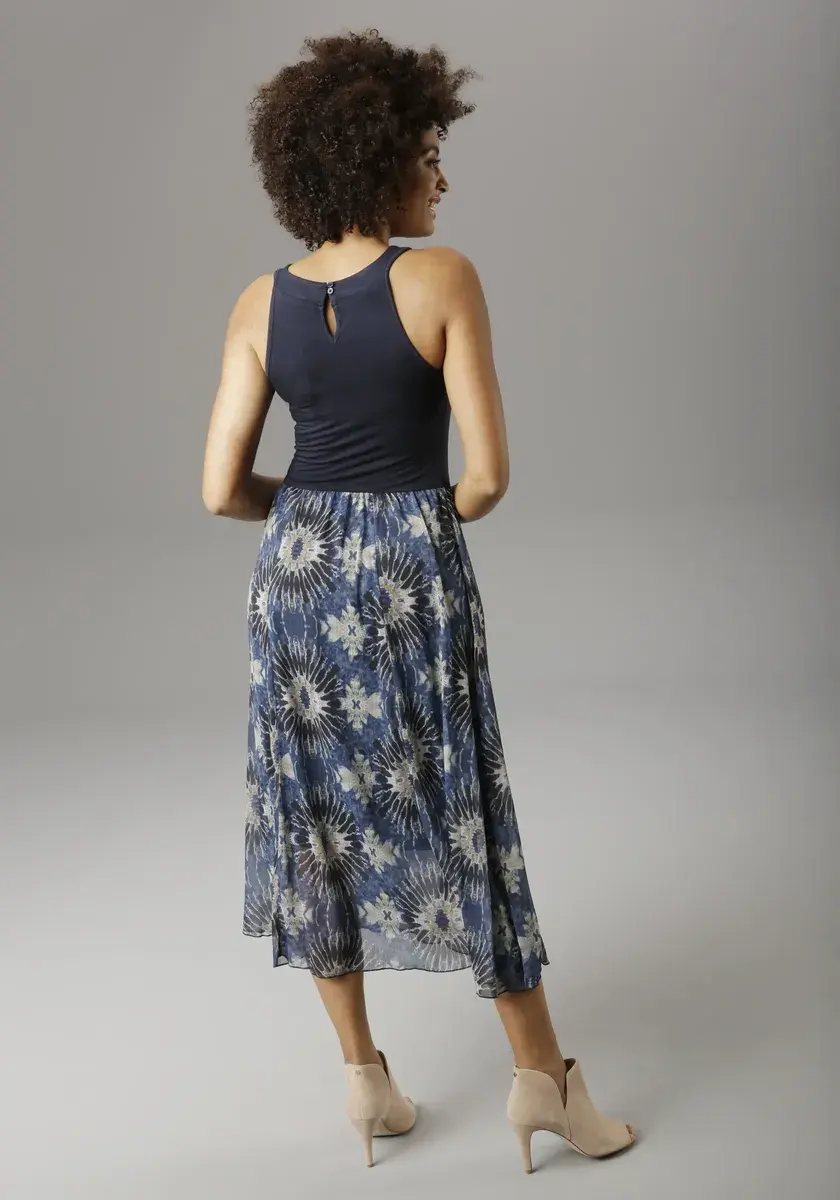 Летнее платье Aniston SELECTED из смешанного материала. Топ из джерси, юбка из жоржета. На трикотажной подкладке. В актуальном узоре батик и длина миди. Машинная стирка.