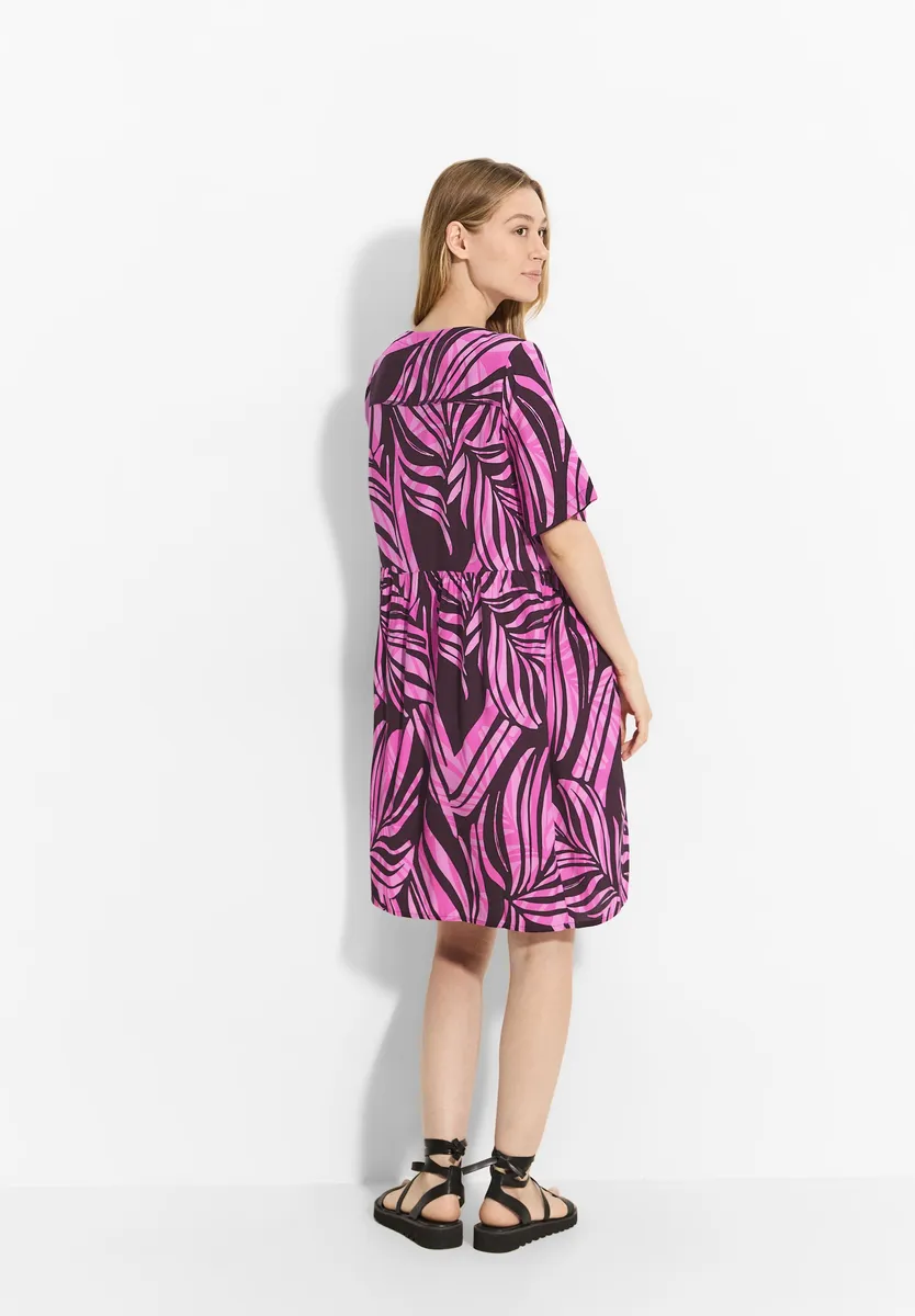 Летнее платье CECIL с принтом, платье длиной до колена, V-образный вырез с планкой на пуговицах, легкие рукава-колокольчики, слегка приталенный, графический узор. Летнее женское платье CECIL с привлекательным принтом и длиной до колена идеально подходит для теплых дней. V-образный вырез с планкой на пуговицах придает платью элегантный вид. Легкие рукава-колокольчики и тонкая талия создают женственный силуэт, а графический узор придает платью современный вид. Платье V-образный вырез с планкой на пуговицах Светлые рукава-колокол Слегка скроенный Графический рисунок Размеры для европейского размера M примерно: Длина 100 см, талия 113 см, ширина низа 168 см. Материал: 100% вискоза Особенности: изготовлено из вискозы Состав материала: 100% вискоза Примечание о размере: Это изделие больше на размер. Материал: 100% вискоза. Инструкции по уходу при отбеливании: Не отбеливать. Инструкции по уходу при глажке: Гладить при умеренной температуре (2 точки) / Гладить в теплой воде / Гладить при умеренной температуре Инструкции по уходу за тканями: Чистка (P) / Чистая / Обычная процедура. Инструкции по уходу при сушке: Не сушить в стиральной машине. Инструкции по уходу при стирке: бережный цикл при 30°С. Страна-производитель : INЦелевая группа: женщины.