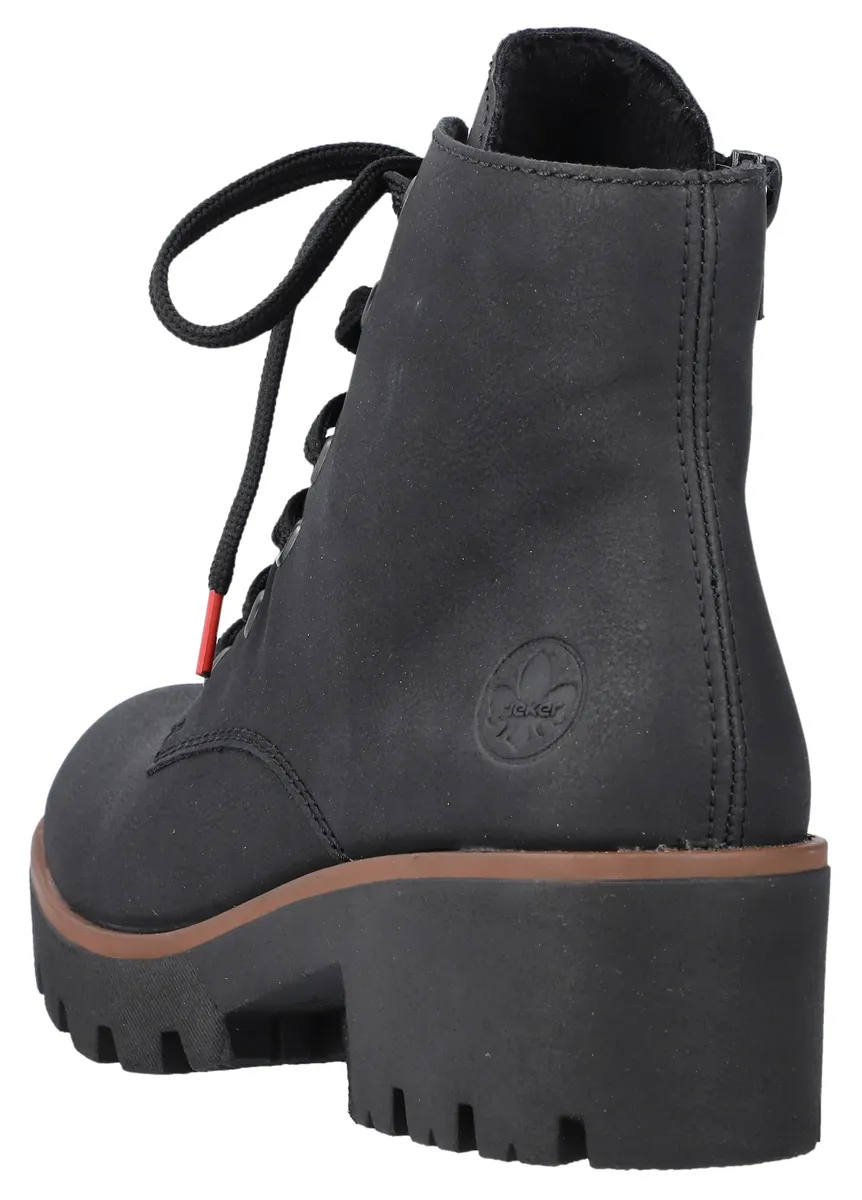 Ботильоны Rieker на шнуровке и прочной профильной подошве, черный