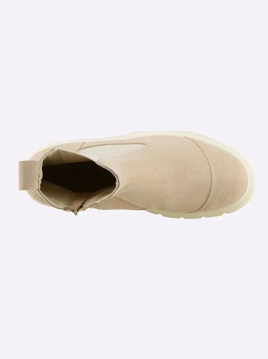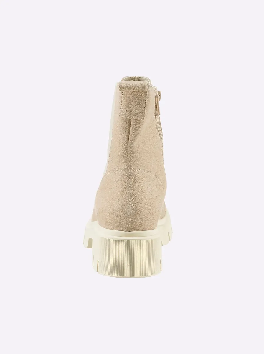 Ботильоны из высококачественной яловой замши. С эластичной вставкой. Синтетическая стелька. Со съемной стелькой. Высота стержня около 16 см. Высота плато ок. 25 мм. Блочный каблук, высота ок. 50 мм.