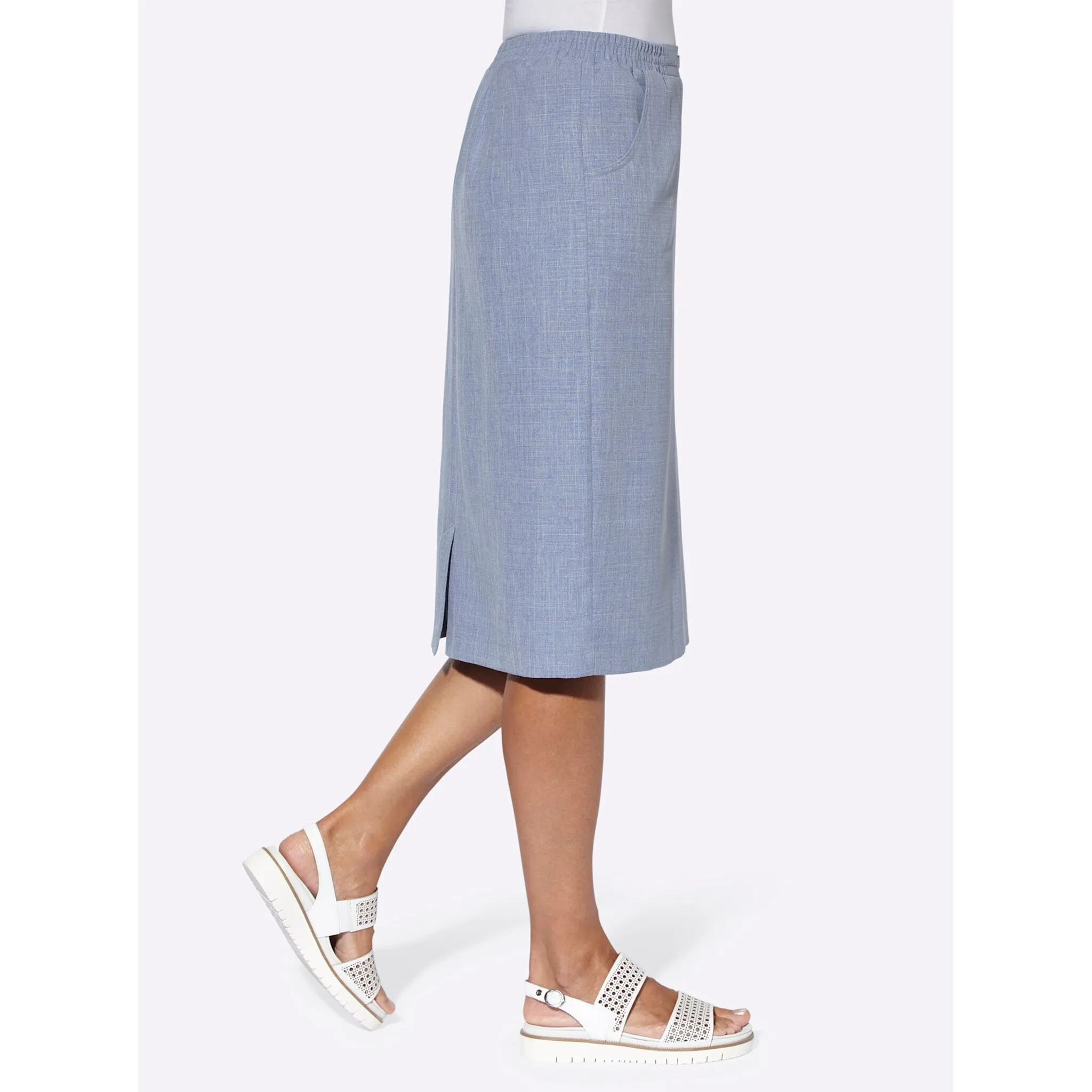Летний льняной образ! Юбка удобной формы без шнуровки с эластичным поясом по всему периметру, гладкой передней частью и декоративной застежкой. Боковые карманы. Сзади разрез. 100% полиэстер. Подкладка: 100% полиэстер. Машинная стирка.
