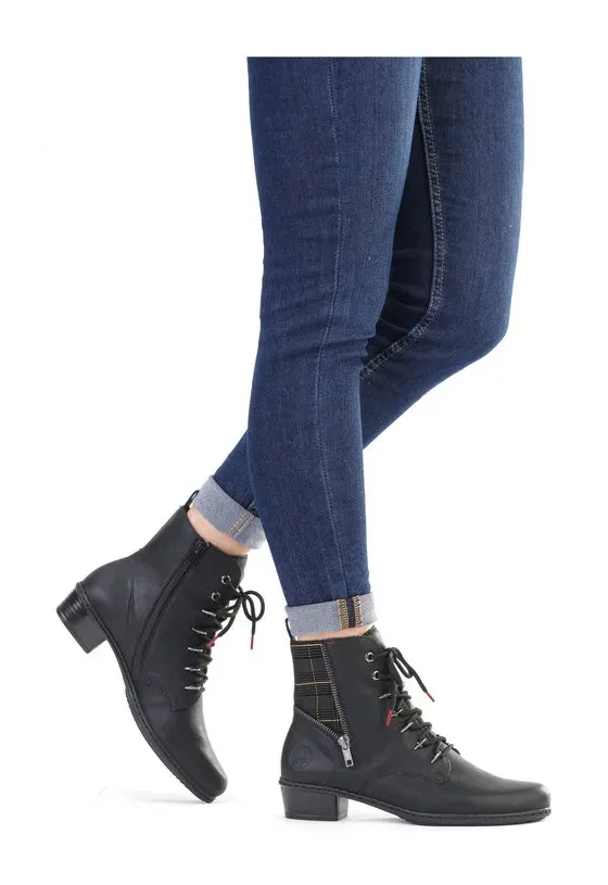 Ботильоны Rieker на шнуровке и модными люверсами, черный