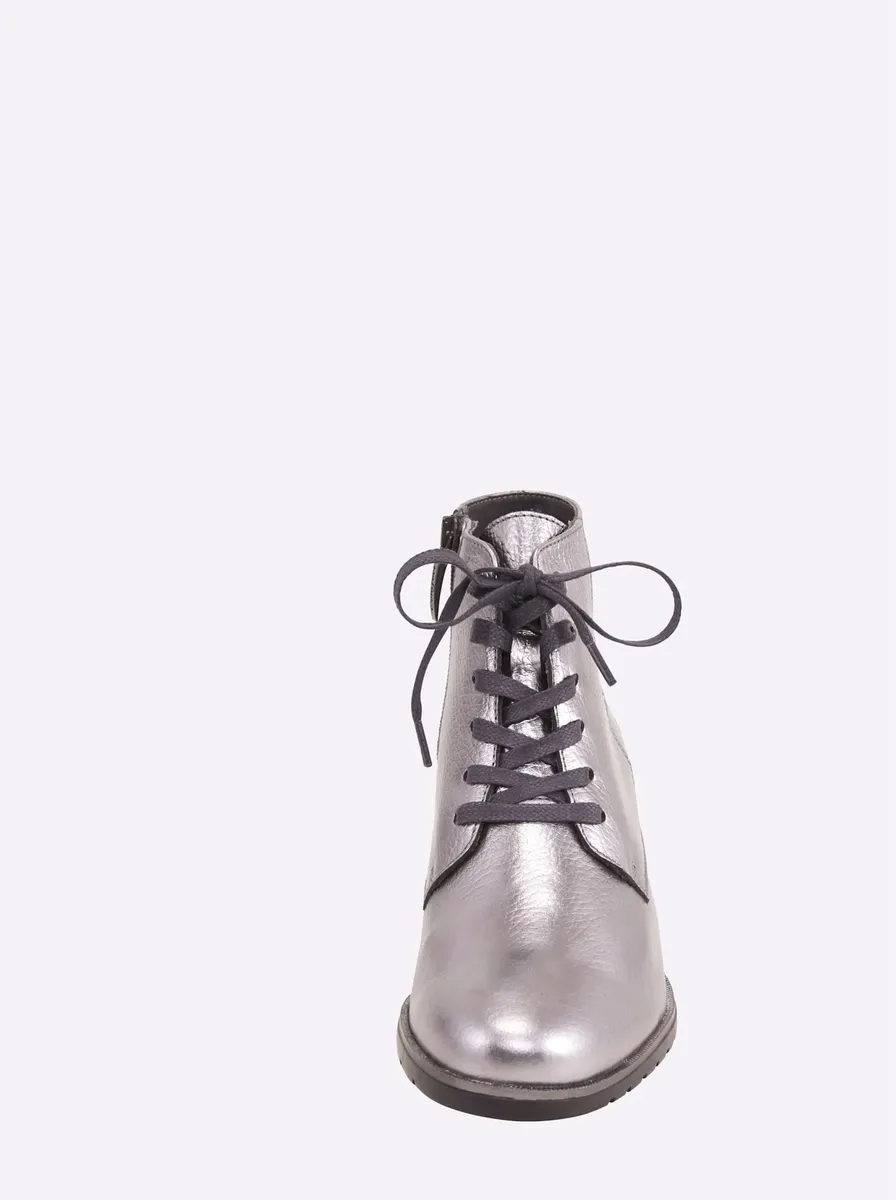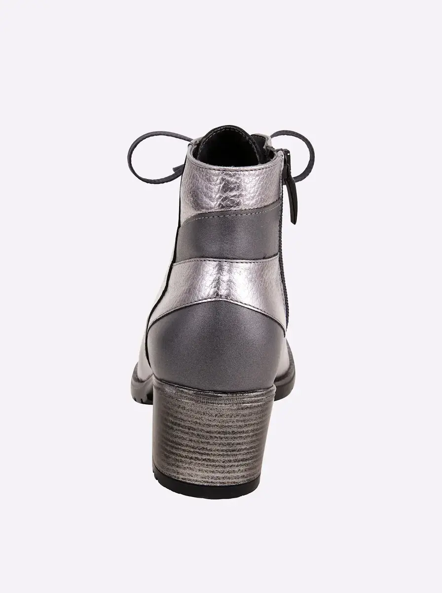 Ботильоны на шнуровке производства Португалии. Гладкая яловая кожа с прекрасным блеском. С застежкой-молнией. Подкладка и мягкая стелька: текстиль. Высота стержня около 10 см. Блочный каблук, высота ок. 50 мм.