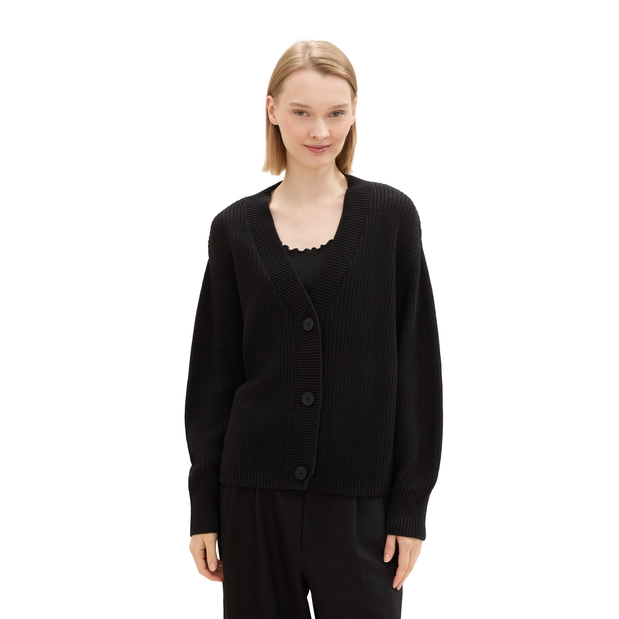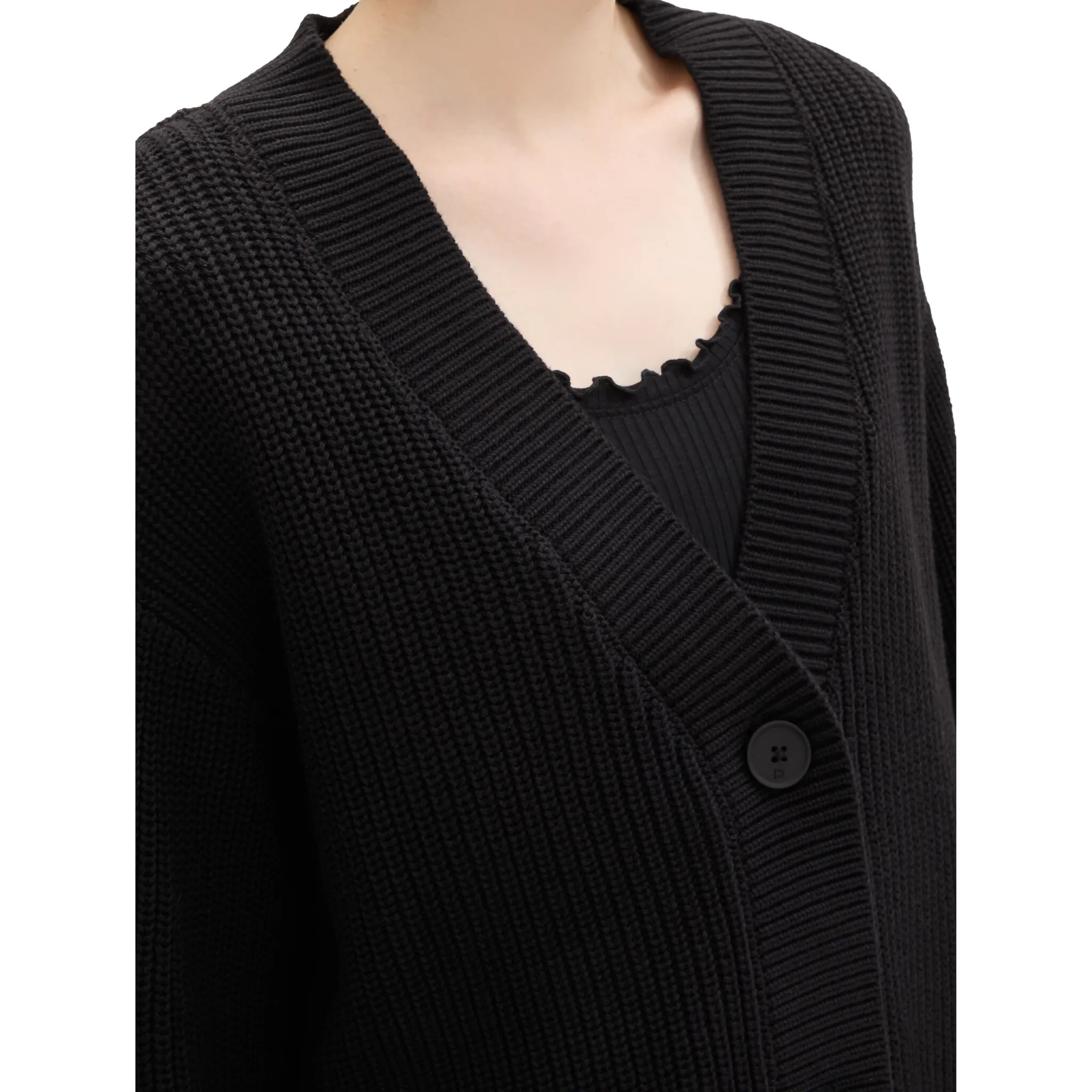 Джинсовый кардиган TOM TAILOR вязки с планкой на пуговицах Tom Tailor Denim, черный 3 780₽