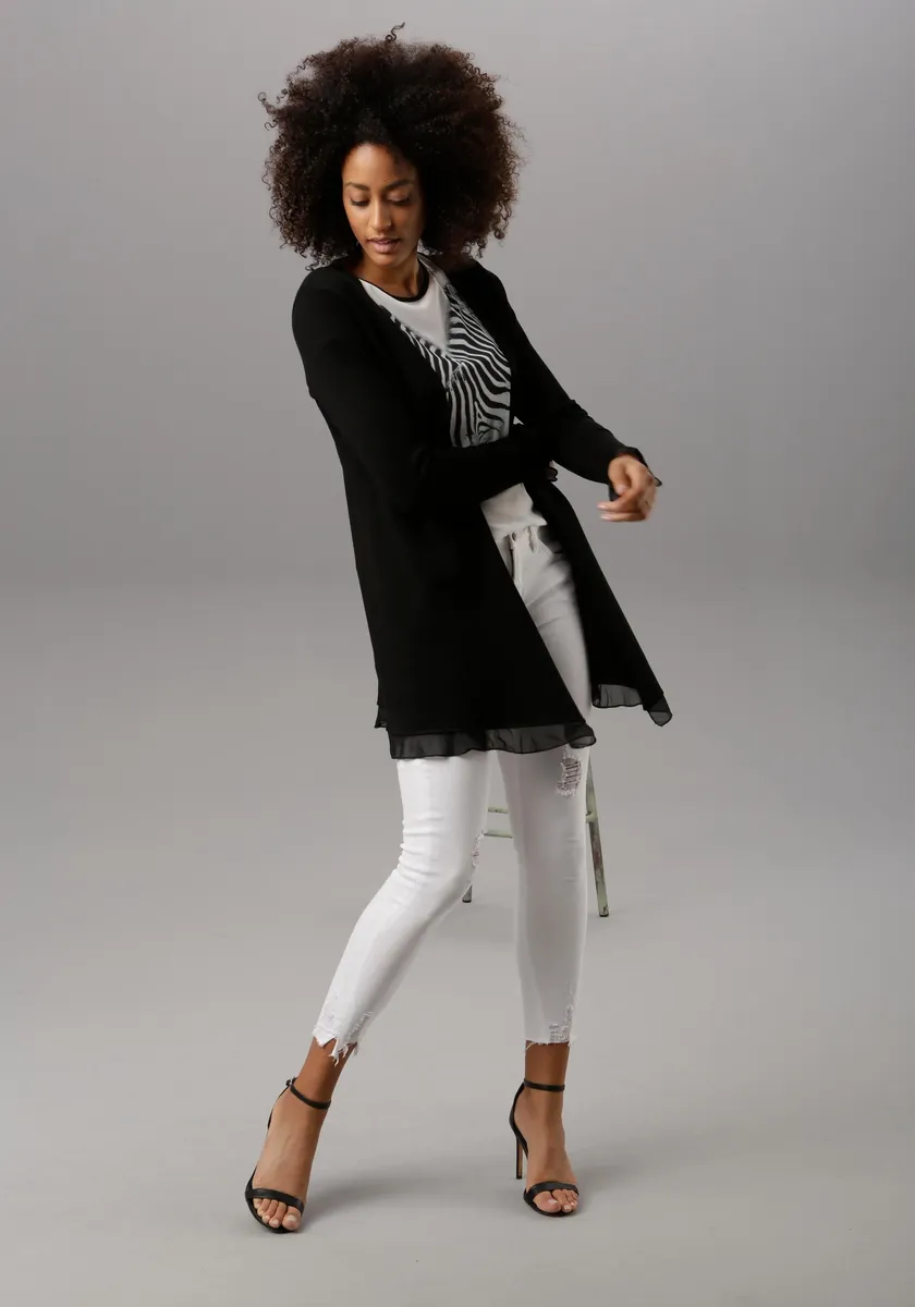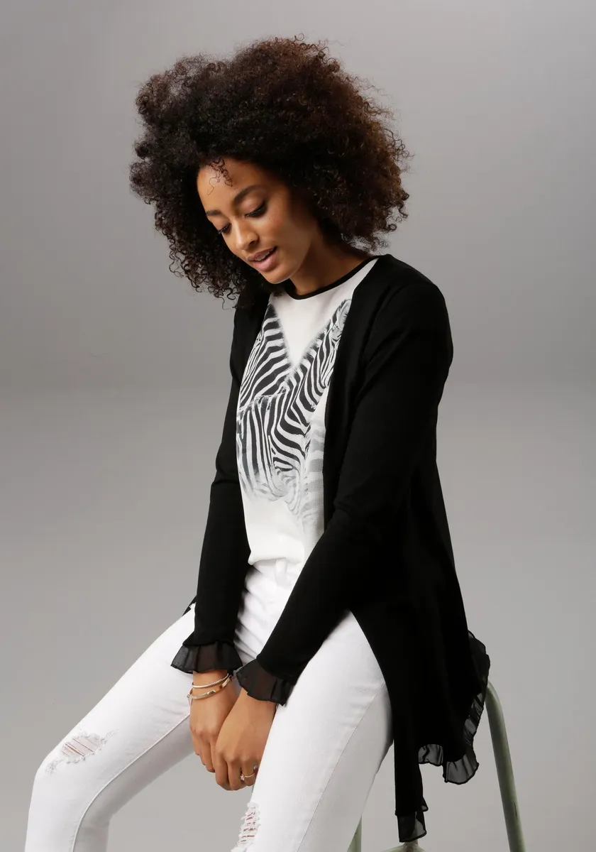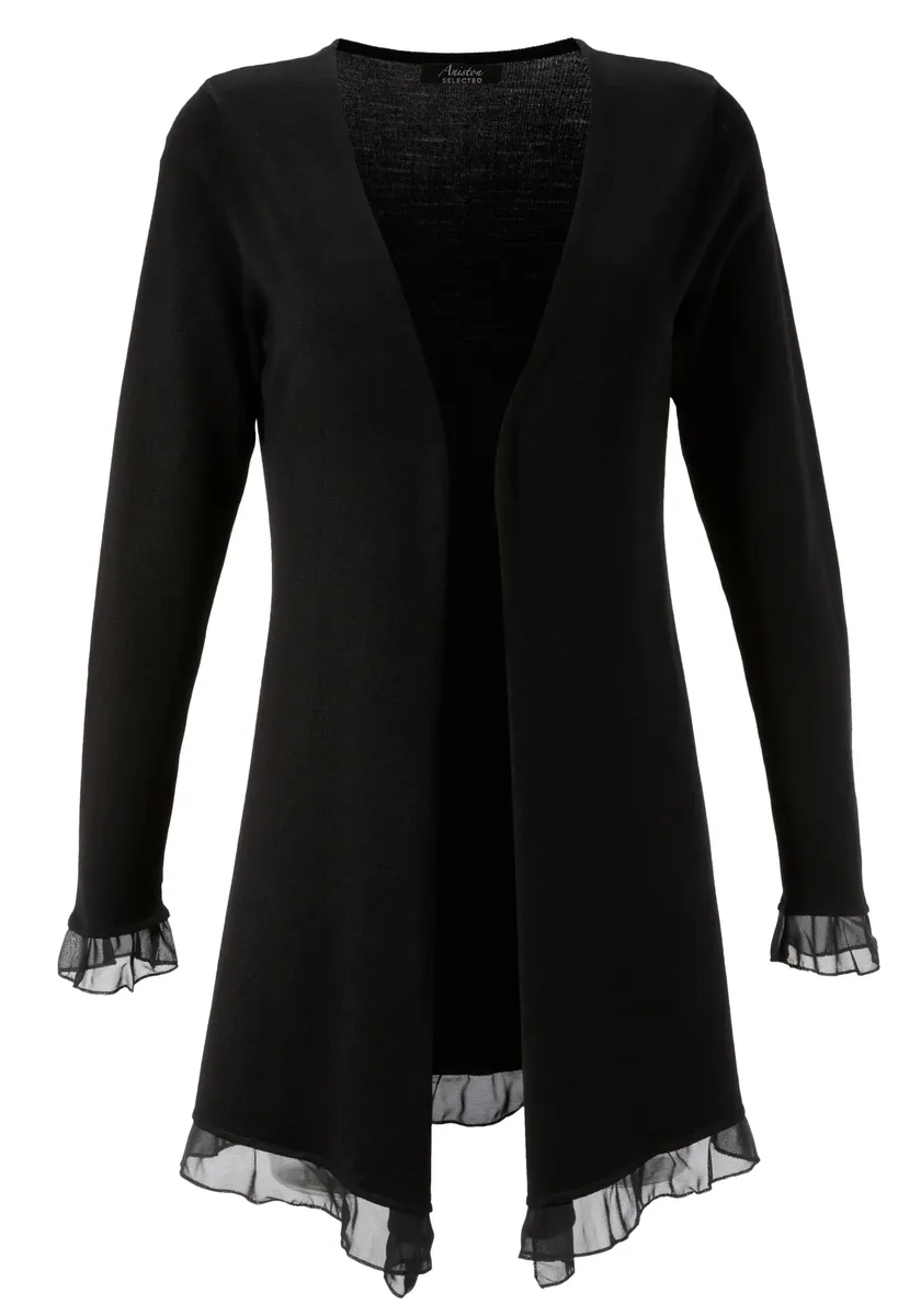 Кардиган Aniston SELECTED с шифоновой отделкой, черный