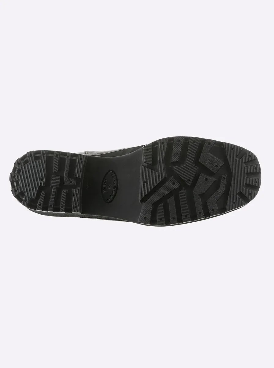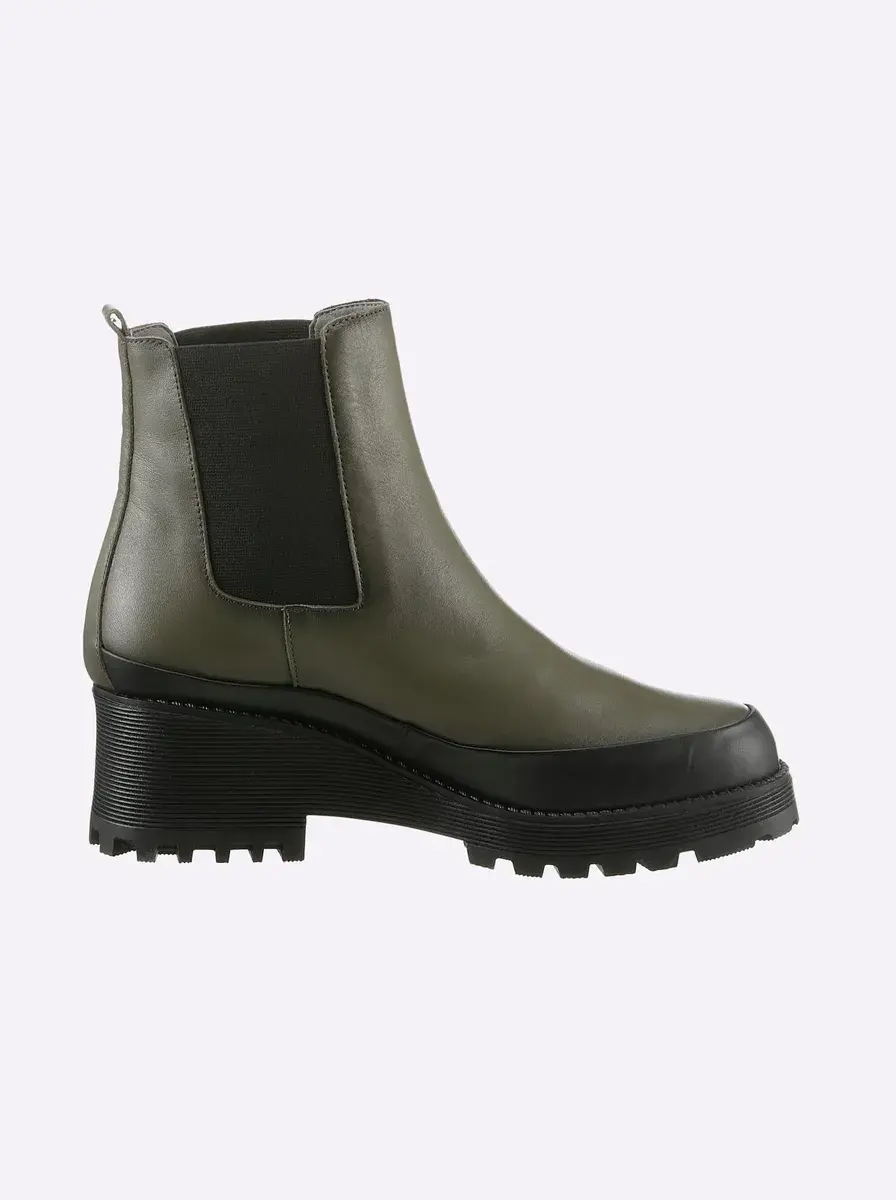 Ботильоны производства Испании. Изготовлен из мягкой яловой кожи с удобной эластичной вставкой. Синтетическая подкладка. Кожаная стелька. Каблук-танкетка, высота ок. 50 мм.