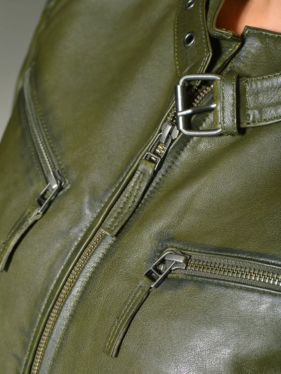 Кожаная куртка застегивается на молнию, имеет боковой карман и дополнительные карманы на уровне груди. Качественный, мягкий материал и множество мелких деталей делают эту куртку настоящей изюминкой. Эта куртка на размер немного меньше - лучше заказать на размер больше.Базовая: нетОтбеливание: Не отбеливатьГлажение: Не гладитьПодкладка: Легкая подкладкаСтрана-производитель: Индия (IN)Стиль куртки: Короткая курткаКоллекция: NOВоротник/вырез: Стойка воротникМатериал подкладки: ХлопокМатериал внешней ткани: Гладкая кожаМатериал подкладки рукавов: ПолиэстерМатериал -Характеристика: КожаДетали верха: не указаноПосадка: Нормальная посадкаИнструкции по уходу: Специальная чистка кожиТип/стиль изделия: КурткаПокрой: Специальные размеры Уровень продукта: не указаноСтиль: КурткаТип кармана: Боковые карманы, на груди карманыТип застежки: МолнияСостав материала: Внешний материал: 100% кожа ягненка / Подкладка: 100% хлопок / Подкладка рукавов: 100% полиэстер