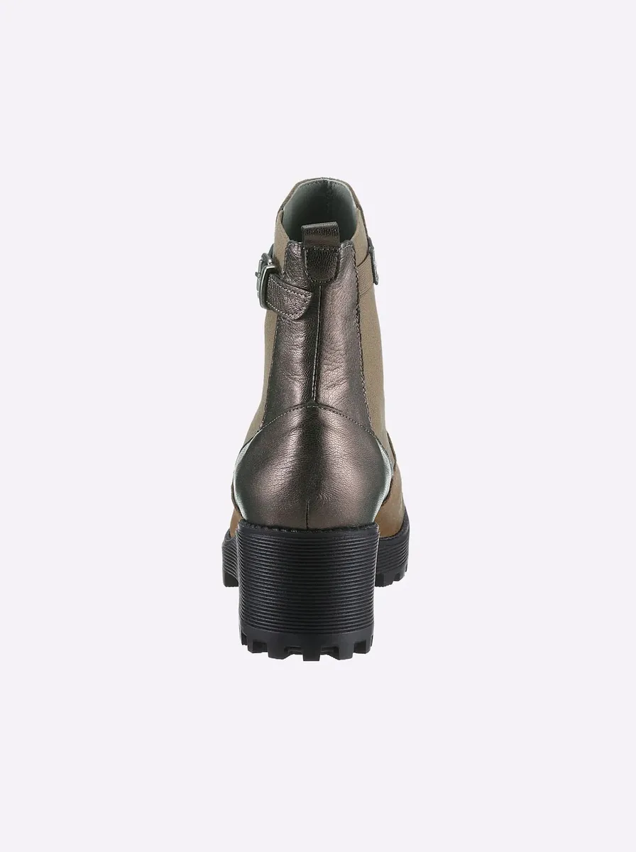 Ботильоны производства Испании. Сочетание воловьей кожи наппа и замши с эффектом металлик. С декоративными ремешками на голенище. Легкий вход благодаря эластичной вставке. Толщина подошвы около 20 мм. Высота каблука около 50 мм.