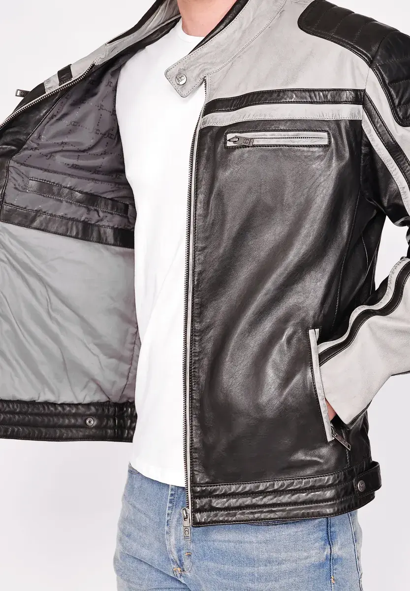Кожаная куртка из бархатистой кожи от качественного бренда JCC. Прочная кожаная куртка в байкерском стиле впечатляет высококачественной кожей в сочетании с высоким уровнем комфорта. Два боковых кармана на молнии для большего комфорта. Внутри есть три внутренних кармана. Куртка очень подходит для перехода между сезонами, так как ее ветроотталкивающие свойства и набивка сохраняют тепло и безопасность весной и осенью.Особенности: нетОтбеливание: Не отбеливатьПодкладка: Частичная набивкаТип размера: Размеры ЕВРОСтрана происхождения: ПакистанПроизводитель: JCCКоллекция: Осень/Зима 21Форма воротника: воротник-стойкаСостав материала: Материал верха: 100% кожа ягненка / Подкладка 50% полиэстер / 50% хлопок / Подкладка рукавов: 100% полиэстерДлина: обычнаяМатериал подкладки: полиэстерМатериал внешней ткани: гладкая кожаПримечание по материалу: Содержит нетекстильные части животного происхождения. Рисунок: разноцветный. Покрой: прямой. Рекомендации по уходу: специальная чистка кожи. Тип/стиль изделия: Длина спинки куртки: около 67 см для данного размера. 50Сезон: осень-зимаПодол: прямой Тип застежки: молнияНабивка: синтетикаЦелевая группа: мужчиныДлина рукава: длинный рукав