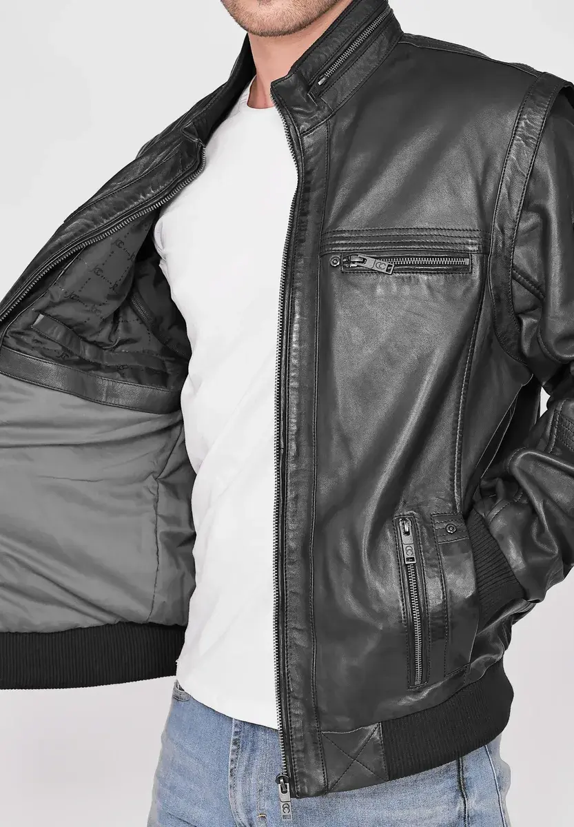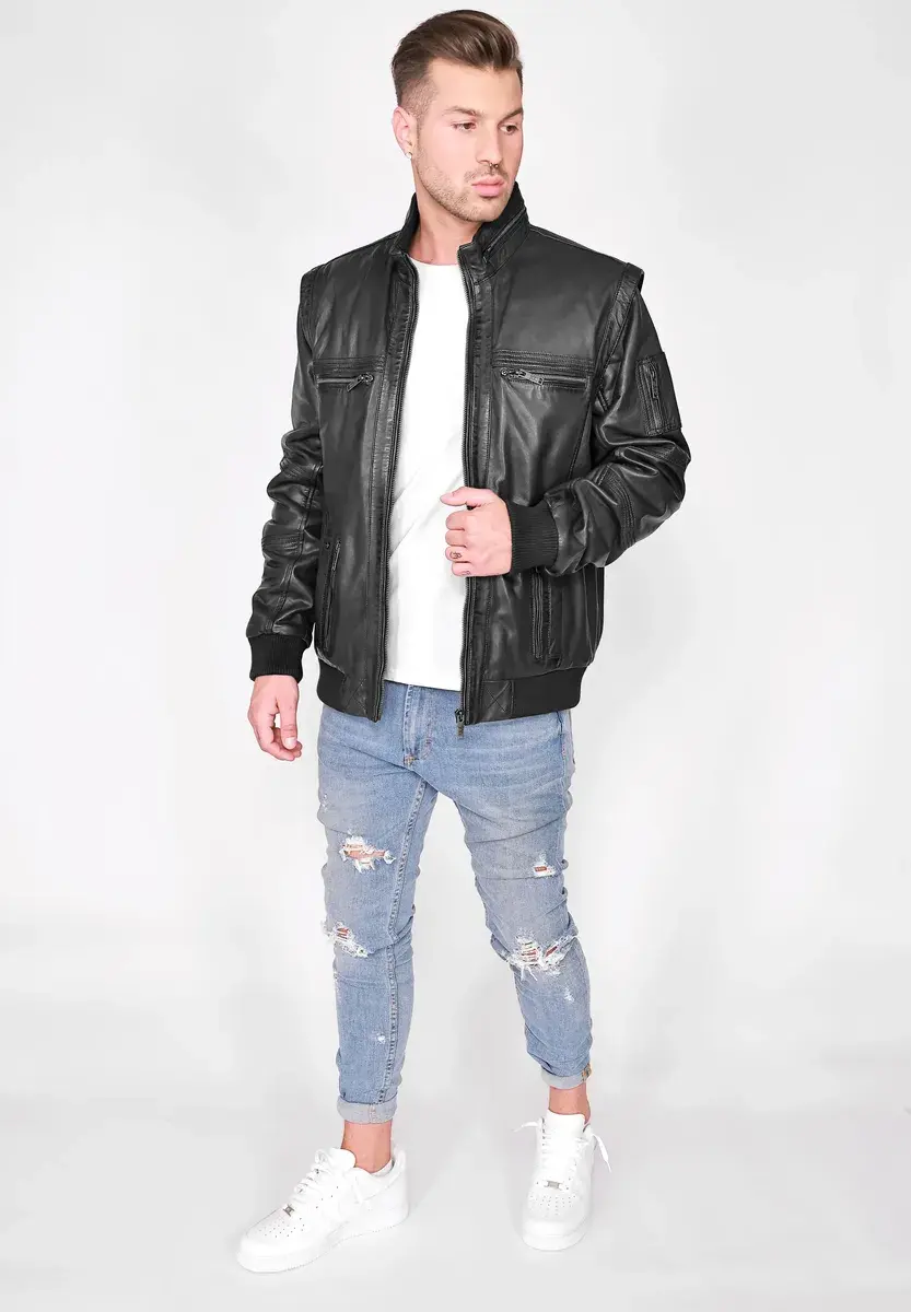 Кожаная куртка из бархатистой мягкой кожи от качественного бренда JCC, со съемными рукавами. Можно превратить в практичный кожаный жилет. Куртка впечатляет высококачественной кожей в сочетании с высоким уровнем комфорта. Два встроенных нагрудных кармана на молнии и комбинированные боковые карманы на кнопках и молниях делают эту куртку особенно удобной. Внутри три внутренних кармана.Особенности: нетОтбеливание: Не отбеливатьПодкладка: Частично на подкладкеТип размера: ЕВРО-размерыСтрана-производитель: ПакистанПроизводитель: JCCКоллекция: Осень/Зима 21Форма воротника: Рубашечный воротникСостав материала: Материал верха: 100% кожа ягненка/ подкладка 50% полиэстер / 50% хлопок / подкладка рукавов: 100% полиэстер / трикотаж: 100% хлопокДлина: обычнаяМатериал подкладки: полиэстерМатериал внешней ткани: гладкая кожаПримечание по материалу: Содержит нетекстильные части животного происхождения.Рисунок: однотонныйПосадка: прямойИнструкция по уходу: кожа специальная чисткаТип/стиль изделия: курткаДлина по спинке: около 67 см для данного размера. 50Сезон: Осень-ЗимаПодол: Трикотажные манжетыТип застежки: МолнияНабивка: Синтетическое волокноЦелевая группа: МужчиныДлина рукава: Длинный рукав