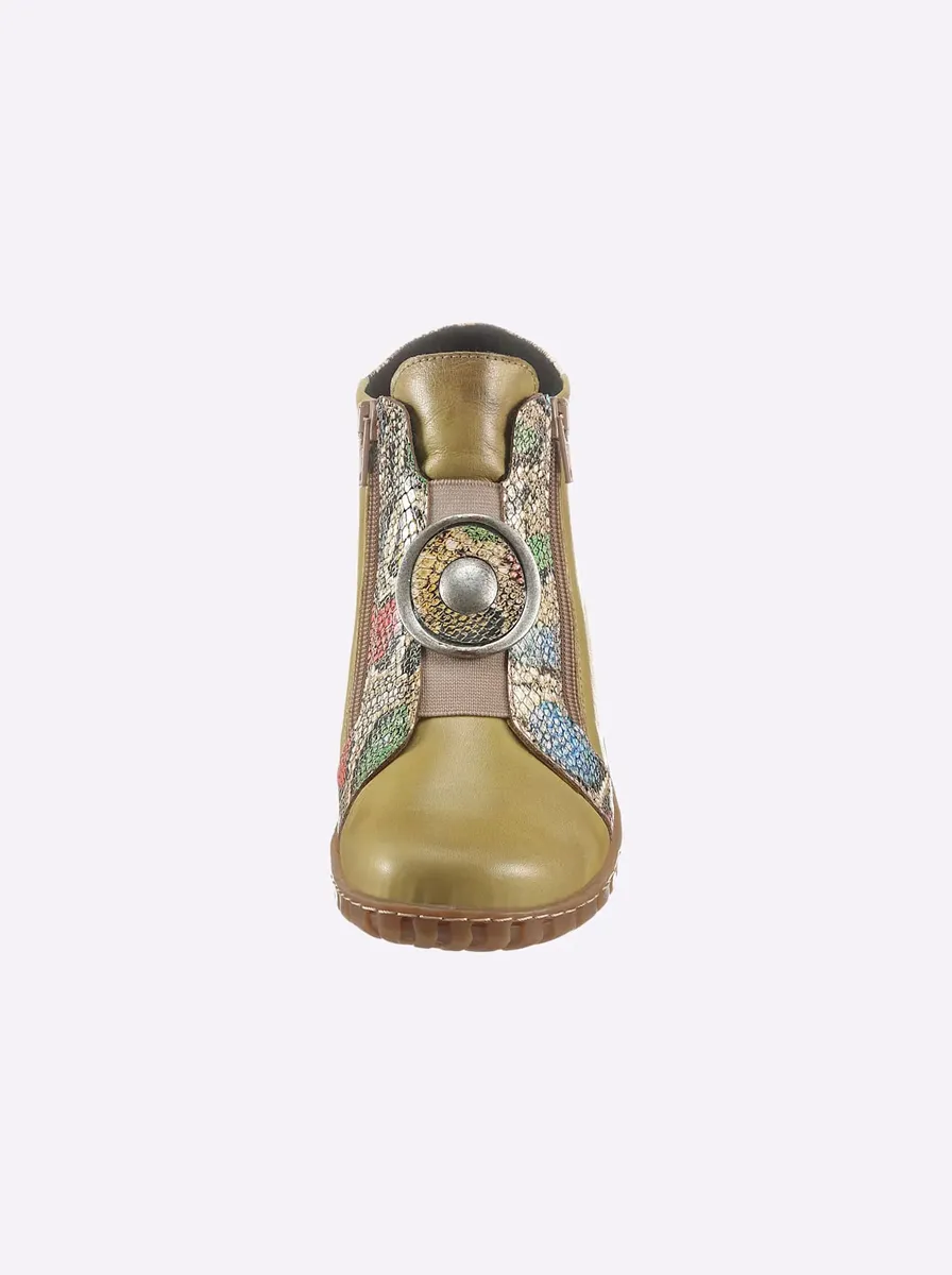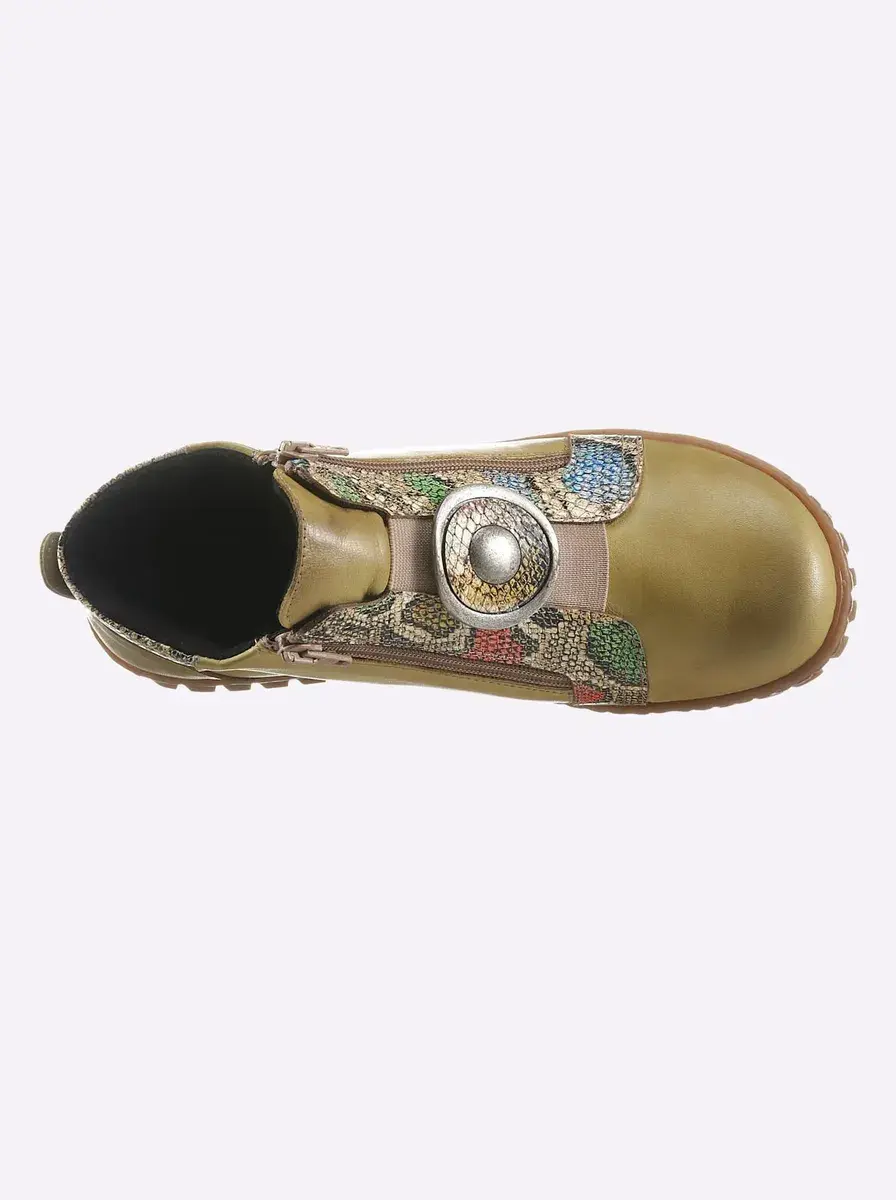 Ботильоны просто необходимы всем поклонникам Близнецов! Вставки с разноцветным рисунком рептилий – абсолютная изюминка. Верх из гладкой кожи, внутренняя часть из текстиля. С боковой молнией и съемной стелькой. Резиновая подошва с каблуком около 25 мм. Ширина Г.