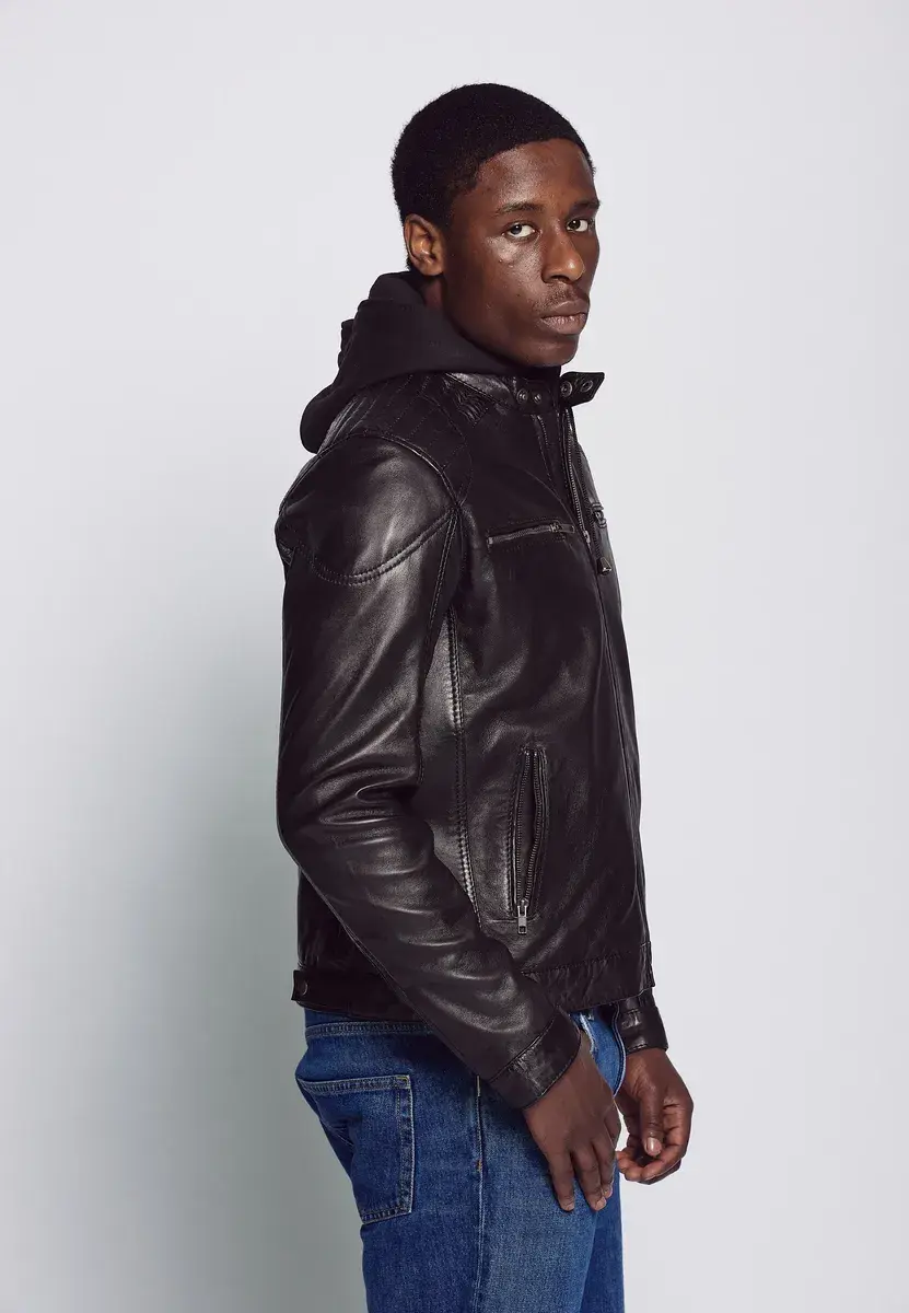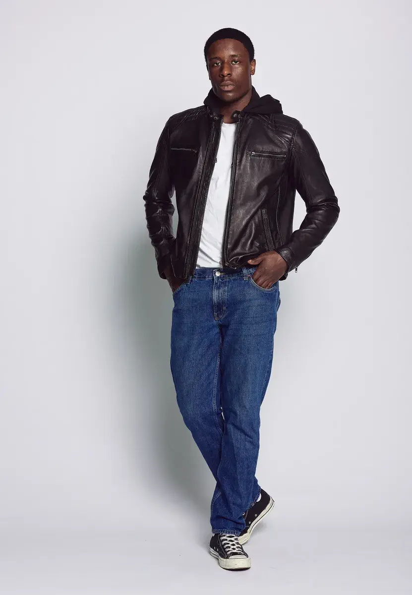 Кожаная куртка украшена тщательно продуманными деталями, такими как повседневные карманы на молнии, декоративные швы и теплый капюшон. Куртка также имеет два нагрудных кармана и двойную молнию.Особенности: МолнииОтбеливание: Не отбеливатьПодкладка: Легкая подкладкаПроизводитель: JCCКоллекция: Весна/Лето 17Форма воротника: КапюшонСостав материала: Внешний материал: 100% кожа, овчина/Подкладка: 100% полиэстер/ Набивка: 100% полиэстер. Капюшон: 65% полиэстер; 35% хлопокДлина: обычнаяМатериал подкладки: полиэстерМатериал внешней ткани: гладкая кожаПримечание к материалу: нет/не актуальноВыкройка: однотоннаяПосадка: прямая Инструкция по уходу: кожа, специальная чисткаТип/стиль изделия: байкерскаяДлина спины: около 69 см для данного размера. 52Сезон: всесезонная вещьПодол: прямой Тип застежки: молнияНабивка: нет/не актуальноЦелевая группа: мужчиныДлина рукава: длинный рукав