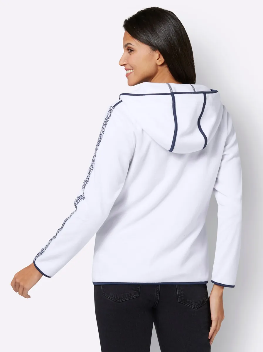 Вы в тренде с флисовой курткой. Декоративные ленты с разным рисунком на рукавах и вырезе, а также детали контрастного цвета. Молния во всю длину. Длинные рукава и подол с окантовкой на манжетах. Элегантная работа, венские швы. Пушистый, мягкий, легкий и согревающий. 100% полиэстер. Машинная стирка.