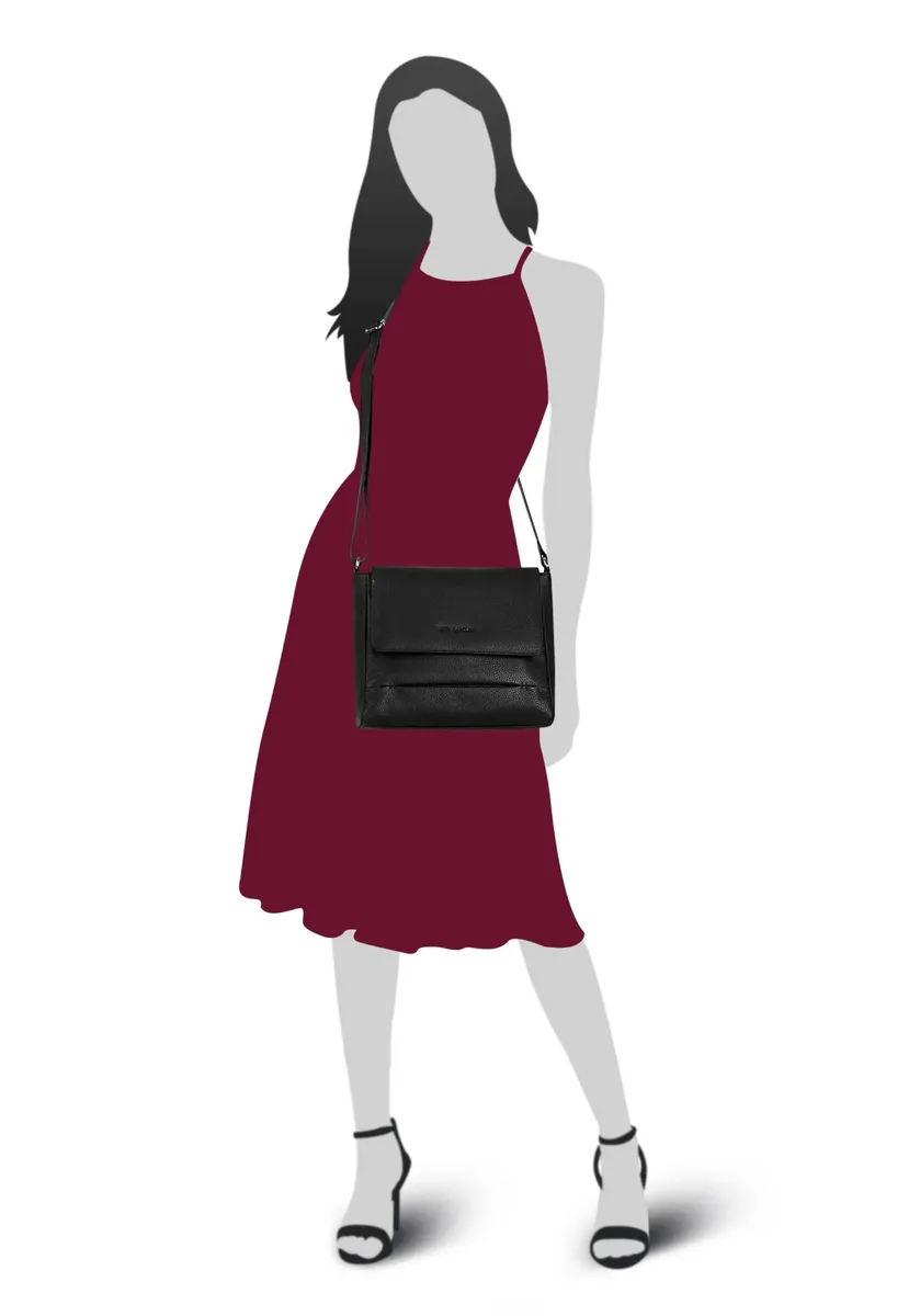 Кожаная сумка через плечо от Betty Barclay прекрасно впишется в повседневную жизнь и досуг! Благодаря простому минималистичному дизайну, он вне времени и является правильным выбором для любого наряда. Формат компактный, не слишком большой и не слишком маленький. Кошелек, смартфон, ключи, книжка для трамвая или маленькая на случай непогоды поместились идеально. В небольшом органайзере внутри есть место для вашего смартфона, визиток и ручек!* 100% натуральная кожа* 1 основное отделение с клапаном и магнитной застежкой* 1 внутренний карман на молнии* 1 внутренний карман для смартфона (до 6,5 дюймов)* 2 отделения для карт внутри * 2 петли для ручек* 1 регулируемый плечевой ремень Отделение для смартфона: 16,5 см (6,5 дюймов) Выходной размер: один размер Папка А4: нет Особенности: натуральная кожа Нижние детали: усиленные Размер: один размер Основная застежка: магнитная Цвет внутренней части: синий Плечо ремень: да (не съемный, регулируемый) Ширина: 28 см Вес: 500 Высота: 22 см Глубина: 7 см Титульное дополнение: натуральная кожа Объем: 4 л Внутренний вид: контрастный цвет Ремень (длина в см): 80 см - 135 см Формат: альбомный формат Наружный материал: 100% коровья кожа Ручка для переноски: без ручкиВид поверхности: однотонная - матовая Внутренний материал: тканьПодходит для ручной клади: даВес: 0,5 кгКоличество основных отделений: 1Закрытие основных отделений: магнитное закрытиеЗаднее отделение: нет