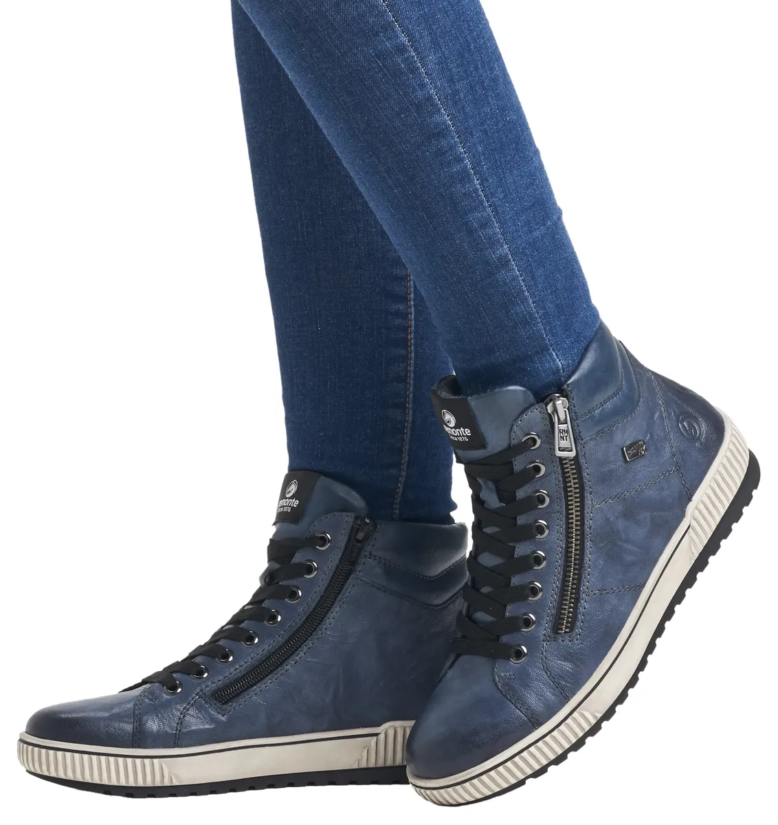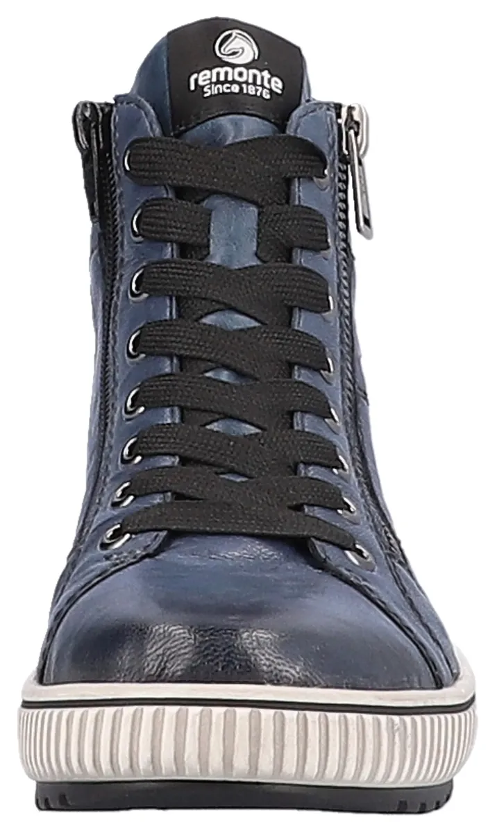 Ботинки Remonte на шнуровке, платформа, ботильоны на шнуровке, ботинки в стиле краш, синий