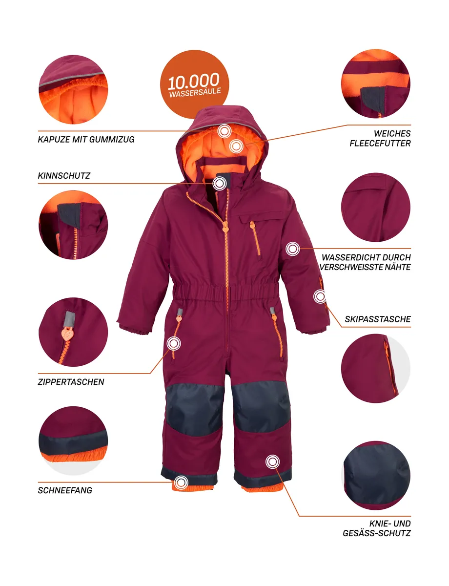 Лыжный костюм killtec для самых маленьких идеально подходит для катания на лыжных склонах, а также для любых приключений на свежем воздухе или для повседневных приключений. Он имеет капюшон с внутренней эластичной кромкой и водонепроницаем благодаря водяному столбу 10 000 мм и сварным швам. Ножки оснащены снегозадержателями и защитой кромок. Уютная флисовая подкладка сохраняет тепло и обеспечивает оптимальный комфорт. Функция роста позволяет удлинить рукава и штанины примерно на 4 см. Это означает, что лыжный костюм можно использовать и в следующем размере одежды. Размер талии можно регулировать по бокам. В многочисленных карманах можно разместить ски-пассы и т. д. Благодаря практичной вшитой именной этикетке куртка не потеряется в детском саду. Для killtec особенно важно сделать коллекции более устойчивыми и ориентированными на будущее. killtec все больше полагается на более ответственные производственные процессы. Поэтому этот лыжный комбинезон был пропитан веществами, не содержащими фтора.