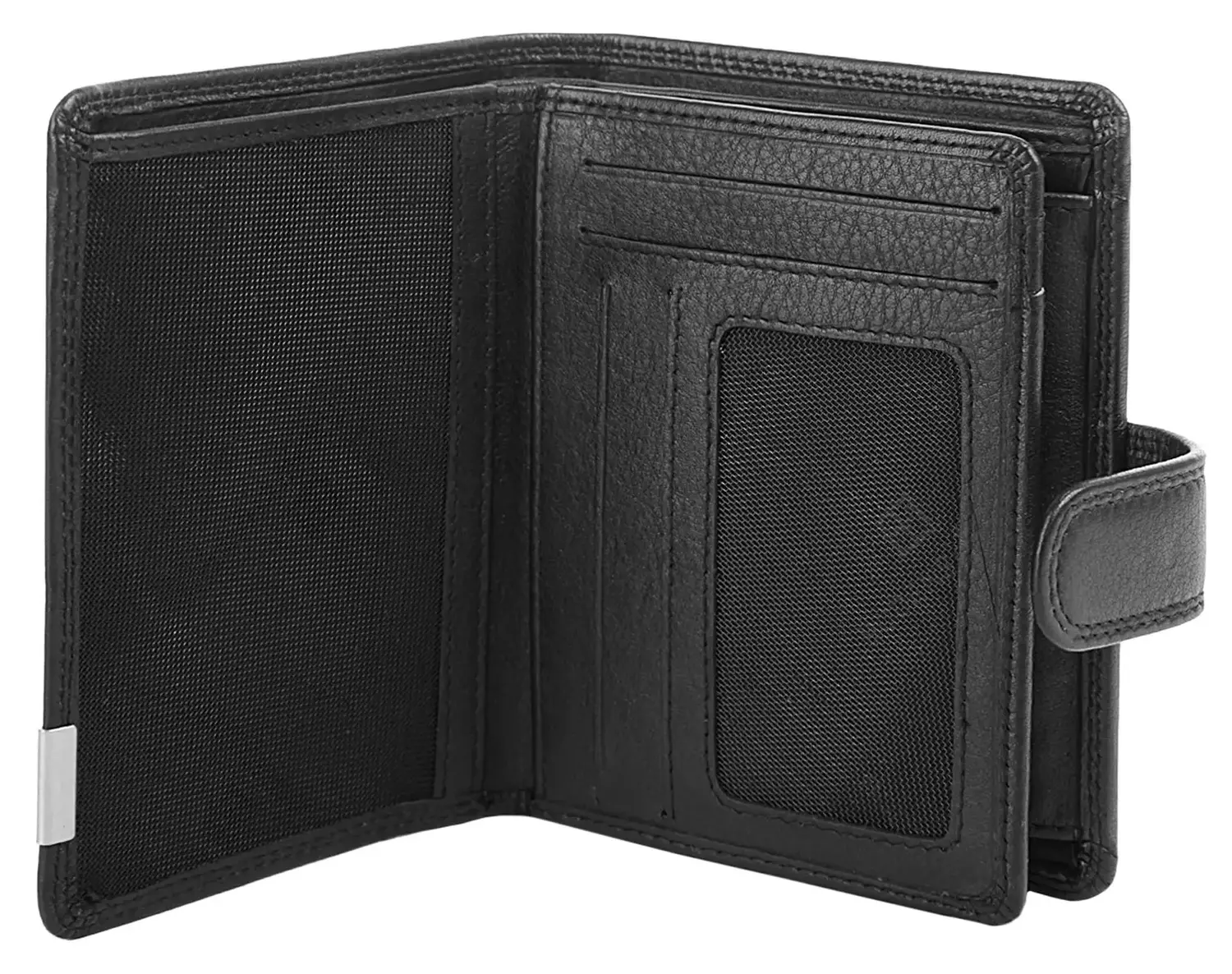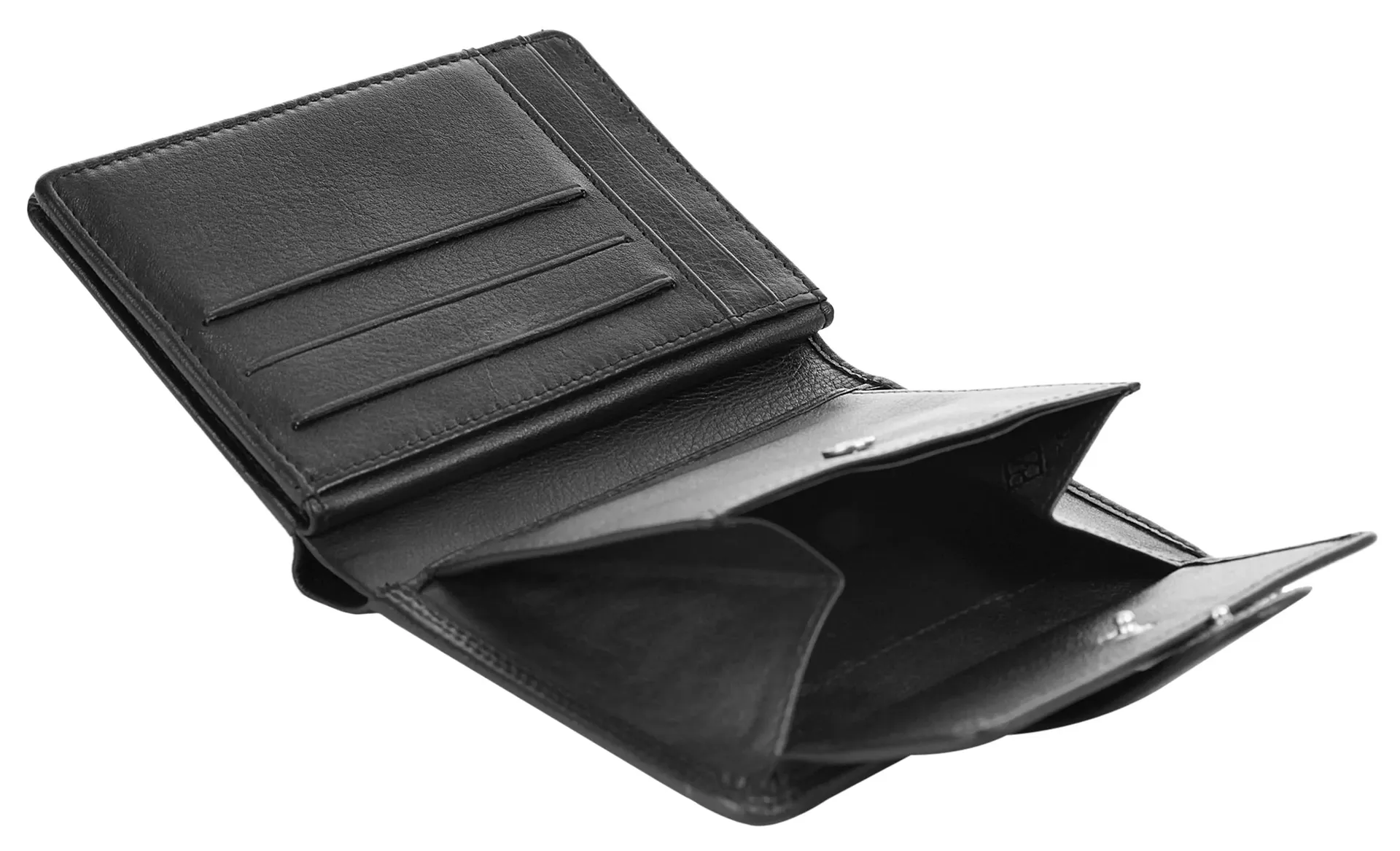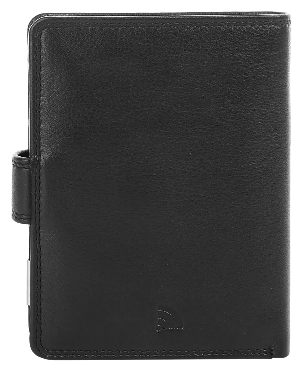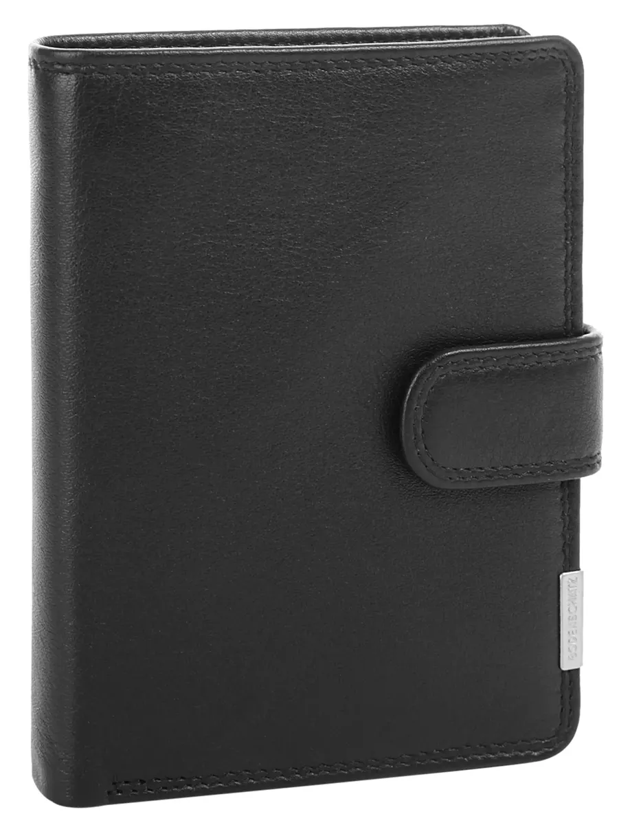 Вы ищете простой, элегантный и качественный кожаный кошелек? Модель от Bodenschatz как раз для этого подойдет. Сдержанный дизайн, приглушенный черный цвет и мягкая кожа делают этот кошелек фаворитом. Всего имеется 12 четко расположенных слотов, в которых найдется место для каждой вашей карты. Внешний клапан с застежкой-кнопкой компактно удерживает ценное содержимое. Встроенная защитная пленка RFID защищает ваши карты от несанкционированного использования данных по радио!* 100% натуральная кожа* 2 отделения для купюр* 1 отделение для монет с застежкой-кнопкой* 6 прорезных карманов* 6 отделений для карт* Защита RFID от несанкционированного использования данных по радио* 2 видимых отделения* язычок на кнопке в качестве застежкиОсобенности: натуральная кожаДополнение к названию: натуральная кожаШирина: 12,5 смВес: 120Высота: 10,5 смГлубина: 2 смКоличество внутренних карманов: 6Количество отделений для карточек: 6Количество отделений для купюр: 2Количество видимых карманов: 2Внешний материал: 100% воловья кожаРазмер: один размерОсновная застежка: кнопкаВнутренний цвет: черныйВнутренний материал: тканьВнутренний вид: соответствующий цветВес: 120 г Отделение для монет: да (кнопка)Оптика Поверхность: обработанная, полуматоваяОбъем: 0,1Формат: Портретный формат