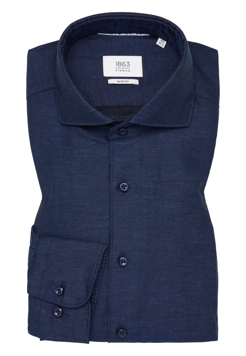 ЛЬНЯНАЯ РУБАШКА ETERNA — идеальное сочетание мягкого хлопка и тонкого льна. Наша однотонная льняная рубашка — универсальная летняя рубашка с элегантным внешним видом. Высококачественная, легко гладящаяся ткань из твила (59% хлопка, 41% льна) легкая, дышащая и приятная на ощупь. Она выполнена с воротником-акулой и укороченной закругленной длиной туловища, поэтому ее также можно использовать в различных вариантах. носить поверх брюк. Рубашка SLIM FIT прекрасно сочетается с повседневными образами, но также подходит для свадеб и летних торжеств. Закажите эту супермягкую ЛЬНЯНУЮ РУБАШКУ из нашей премиальной линии «1863 by ETERNA» прямо сейчас.