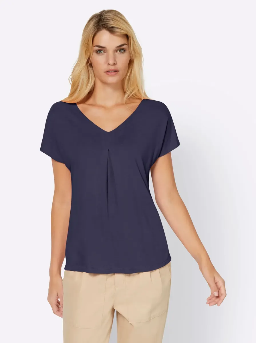 Любимая комбинация рубашек из струящегося джерси. Со складками под V-образным вырезом и короткими рукавами со спущенной линией плеча. 100% вискоза. Машинная стирка.