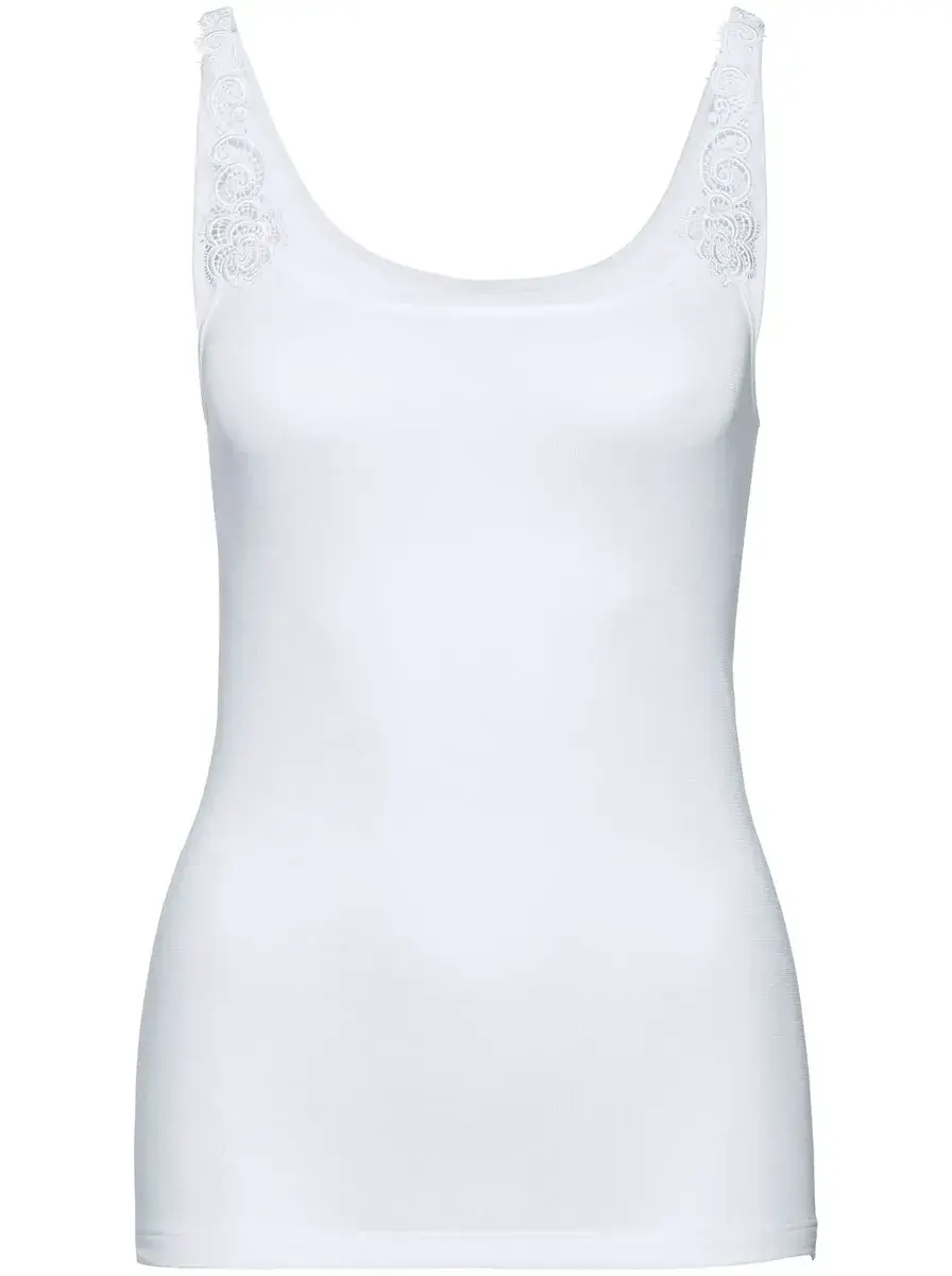 Майка Comazo из приятного, мягкого материала. С красивым кружевным декором спереди на бретелях. 98% Модал (МикроМодал), 2% Эластан.