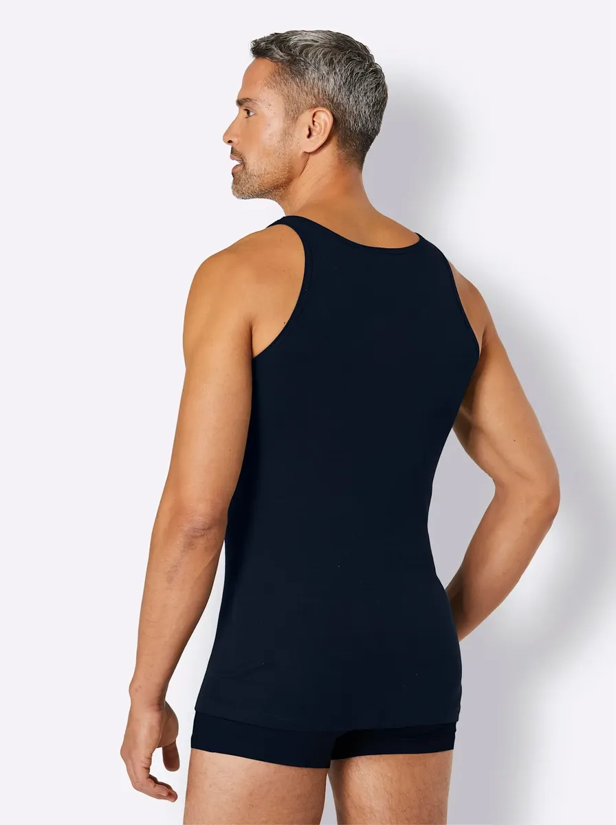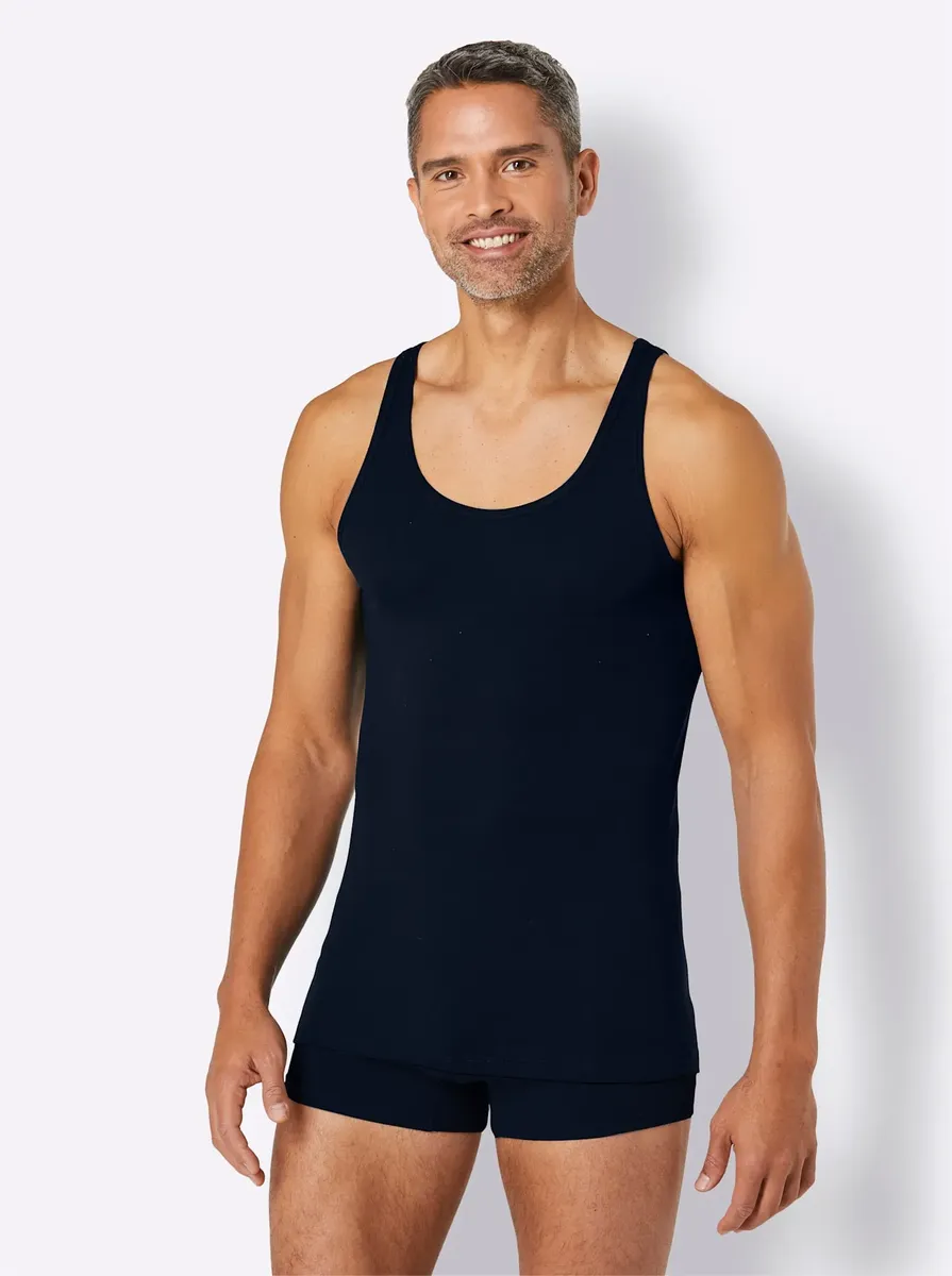 Майка с удлиненной спинкой от качественного бренда Schiesser. Изготовлен из чистого хлопка. 100% хлопок.