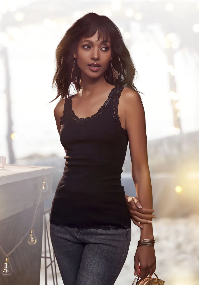Майка H.I.S (3 шт. в упаковке), с кружевом, черный
