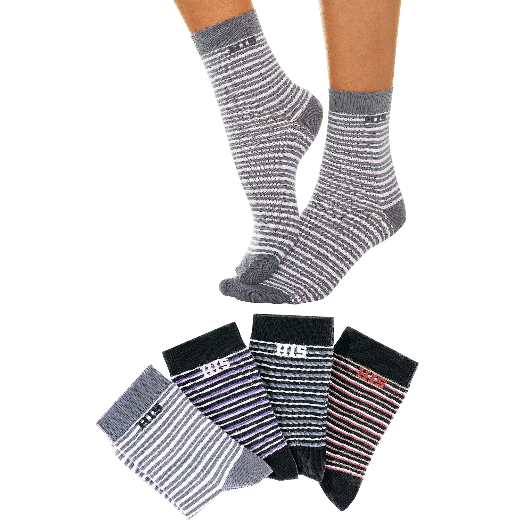 Базовые носки H.I.S (упаковка, 4 пары), с вязаным логотипом бренда, черный